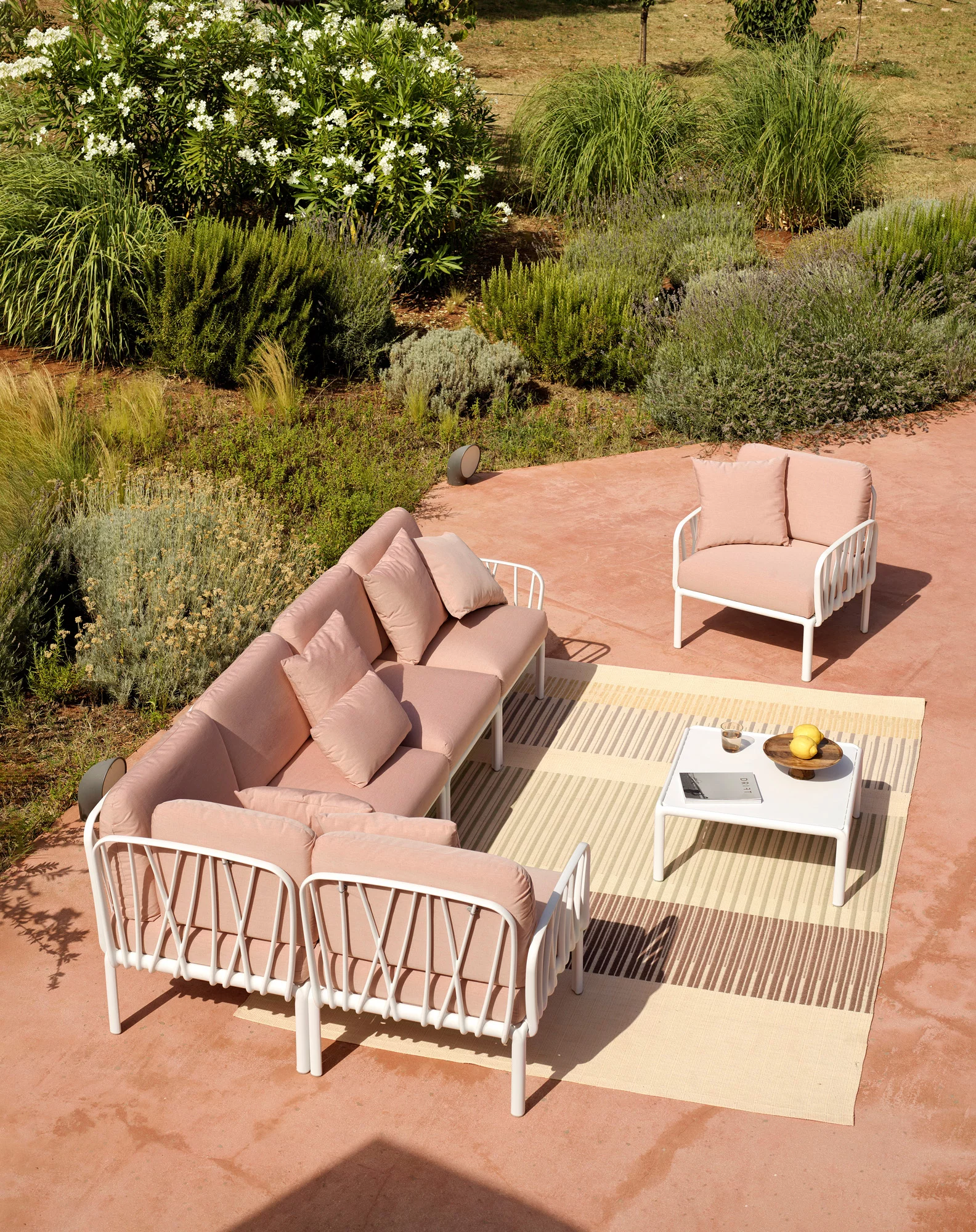 Zestaw modułowy Nardi Komodo 5 to profesjonalne rozwiązanie meblowe klasy premium, zaprojektowane przez wybitnego projektanta Raffaello Galiotto. Model ten stanowi kwintesencję nowoczesnego designu inspirowanego naturą – jego ażurowa konstrukcja nawiązuje do splotów gałęzi drzew, nadając całości lekkości i organicznego charakteru. Dzięki unikalnemu systemowi modułowemu, Komodo 5 pozwala na niemal dowolną konfigurację pięciu elementów siedzących, które można zestawiać jako klasyczny narożnik, długą sofę prostą lub niezależne fotele. Jest to idealny wybór dla inwestorów poszukujących mebli, które potrafią ewoluować wraz ze zmieniającymi się potrzebami tarasu, patio czy prestiżowych stref relaksu w obiektach komercyjnych, łącząc bezkompromisowy styl z najwyższym komfortem użytkowania.