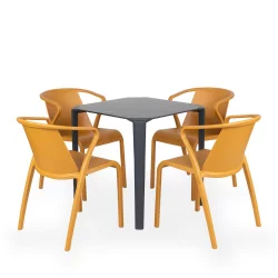 Stół ten został wykonany z polipropylenu, czyli wytrzymałego i łatwego do utrzymania w czystości tworzywa. W naszym sklepie z łatwością dopasujesz do niego także stylowe krzesła marki Ezpeleta, kompletując wygodny i modny zestaw do ogrodu czy jadalni.