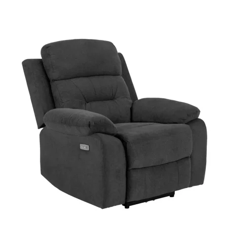 Vansbro recliner, Enjoy fabric dark grey 24, base matt black powder coated steel, with C plug, USB-A and motorised recline, 92x96x98 cm