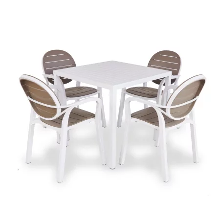 Stół CUBE 80 bianco/biały + 4 krzesła PALMA bianco tortora/biało brązowy
