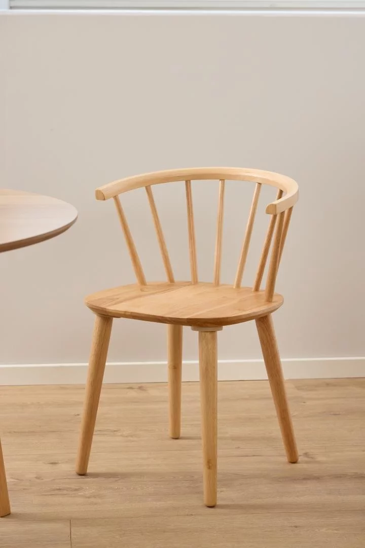 Krzesło drewniane Jorana – styl i wygoda w jadalni Krzesło Jorana to eleganckie i funkcjonalne rozwiązanie do każdej jadalni. Wykonane z solidnego drewna kauczukowego, lakierowanego na kolor dębu matowego, zachwyca naturalnym charakterem i wytrzymałością. Wyprofilowane, szczebelkowe oparcie zapewnia komfort siedzenia i odpowiednie podparcie pleców, a jednocześnie nadaje meblowi lekkości. Dzięki ponadczasowemu designowi w odcieniu dębu krzesło doskonale komponuje się zarówno z wnętrzami skandynawskimi, jak i nowoczesnymi czy rustykalnymi. Krzesło Jorana dostępne jest w zestawie po 2 sztuki, co czyni je idealnym wyborem do rodzinnej jadalni, kuchni czy salonu.