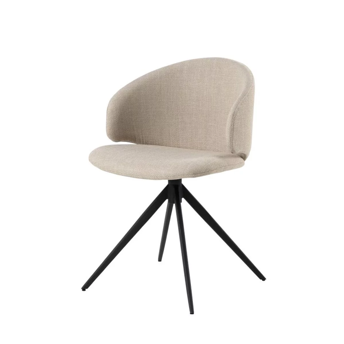 Krzesło do salonu osadzone jest na czteroramiennej podstawie ze stali malowanej proszkowo na czarno. Tego typu konstrukcja zapewnia meblowi wyjątkową stabilność i nadaje mu nowoczesny charakter. Obrotowa funkcja sprawia, że krzesło jest wygodne i praktyczne, sprawdzając się zarówno w przestrzeniach biurowych, jak i jadalnianych.