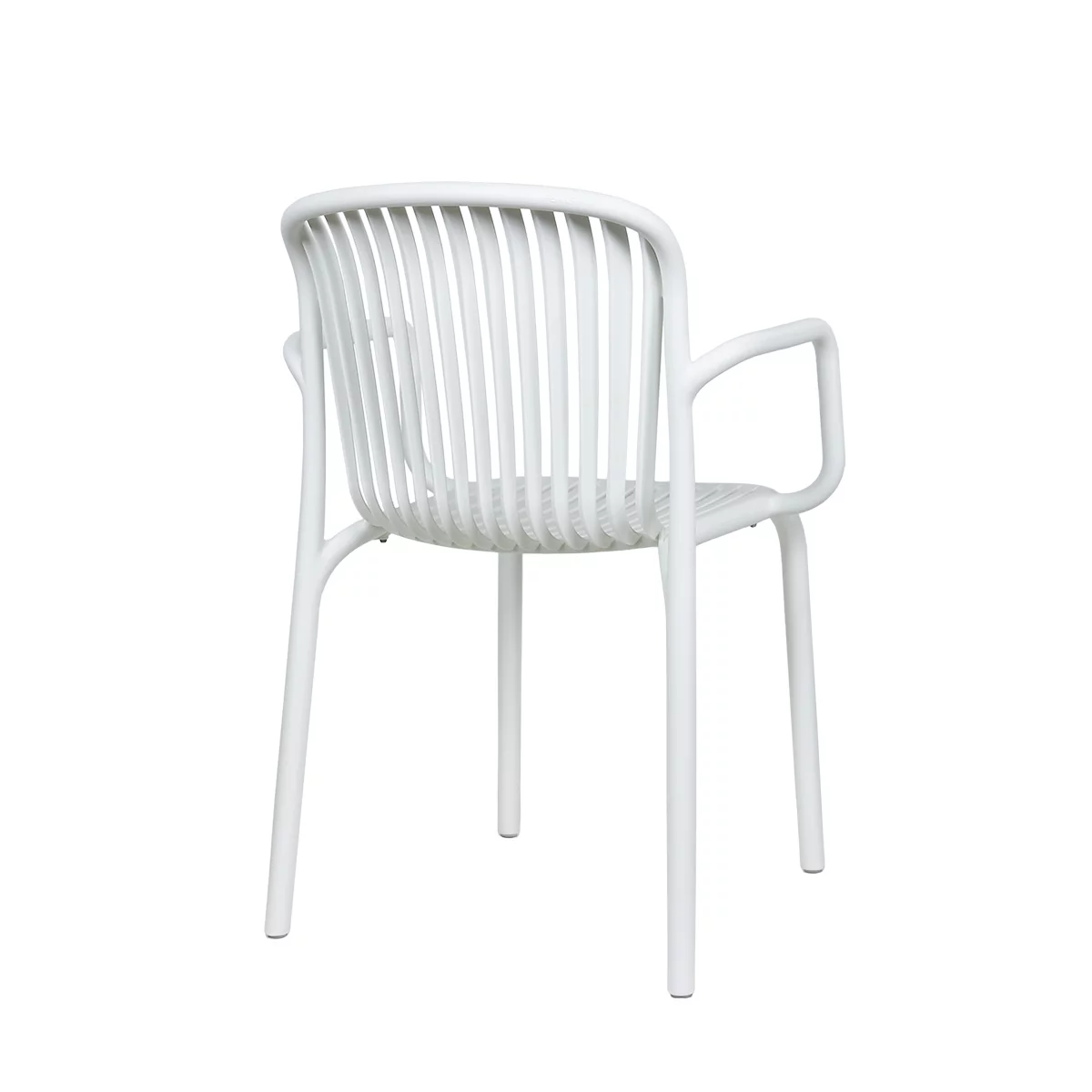 Krzesło BRENE z podłokietnikami to wygodne i stylowe rozwiązanie do ogrodu, na taras i do wnętrz. Ażurowe, trójkątne listwy zapewniają przewiewność, a ergonomiczne podłokietniki zwiększają komfort użytkowania. Lekka konstrukcja ułatwia przenoszenie, a możliwość sztaplowania pozwala na wygodne przechowywanie. Odporne na wilgoć i warunki atmosferyczne, idealnie sprawdzi się zarówno na zewnątrz, jak i w pomieszczeniach.