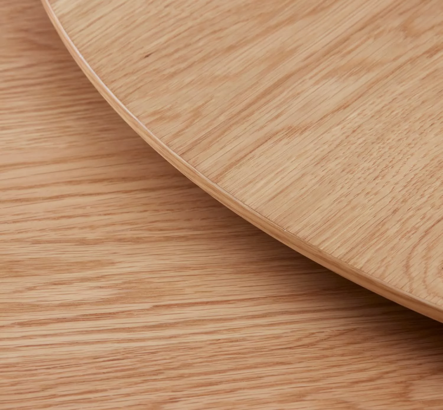 Blaty stolików wykonano z wytrzymałej płyty MDF pokrytej naturalnym fornirem dębowym, co gwarantuje trwałość oraz piękny wygląd z widoczną strukturą drewna. Nogi z litego drewna dębowego podkreślają solidność konstrukcji i wysoką jakość wykonania.