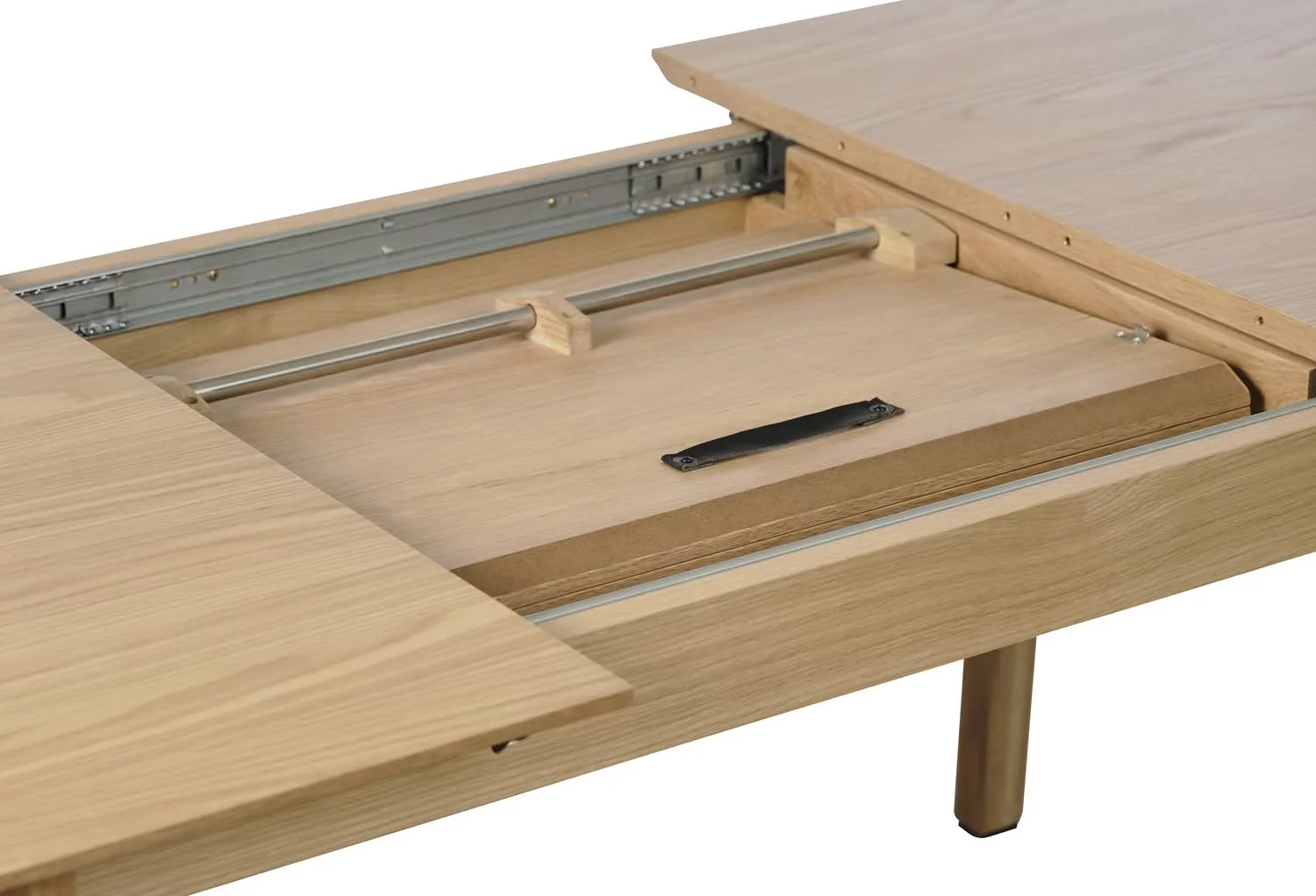 Stół BARI to prostokątny, rozkładany mebel idealny do salonu i jadalni. Blat z płyty fornirowej łączy trwałość z naturalnym wyglądem drewna, a solidne nogi z drewna dębowego zapewniają stabilność i elegancki charakter.