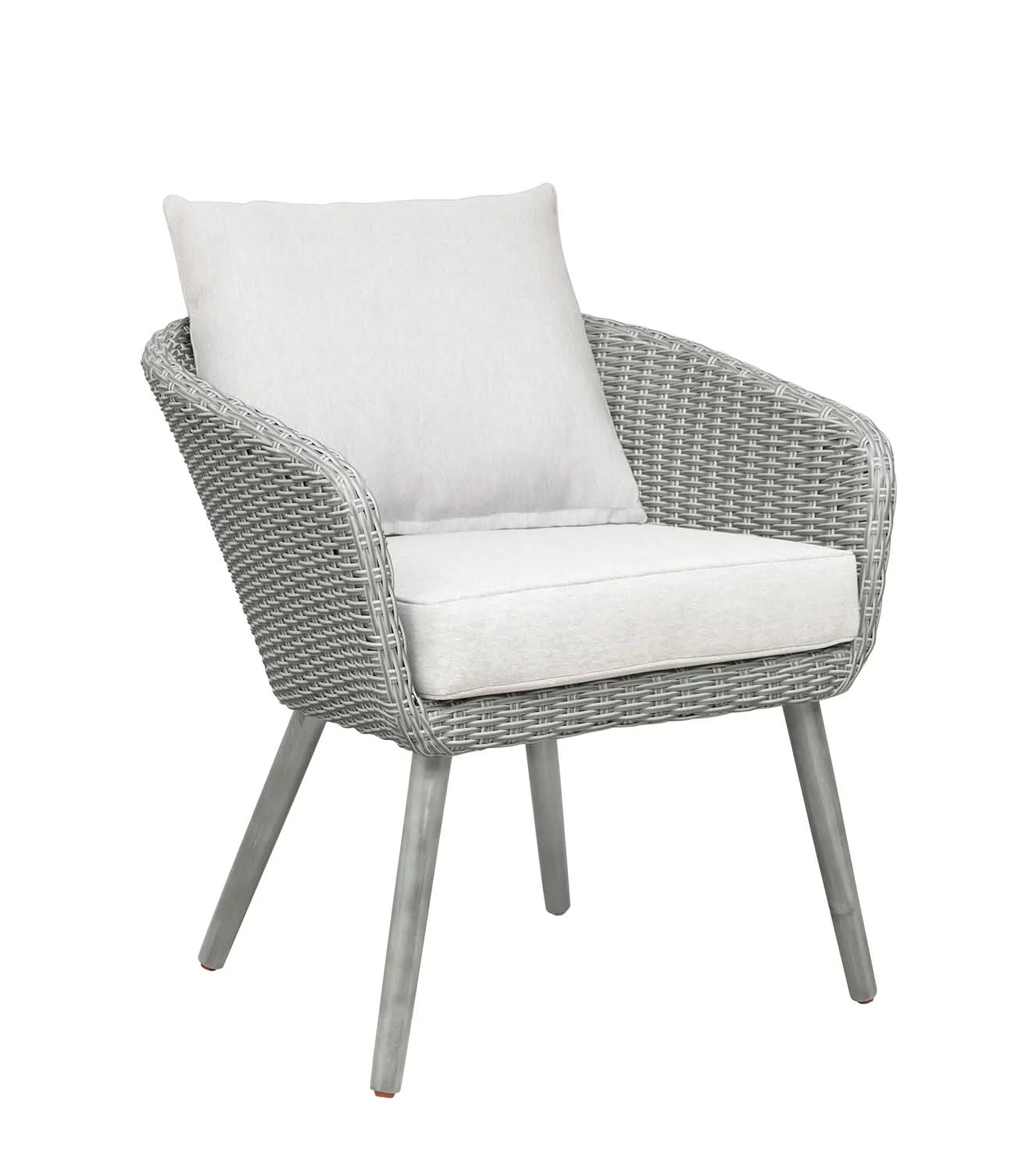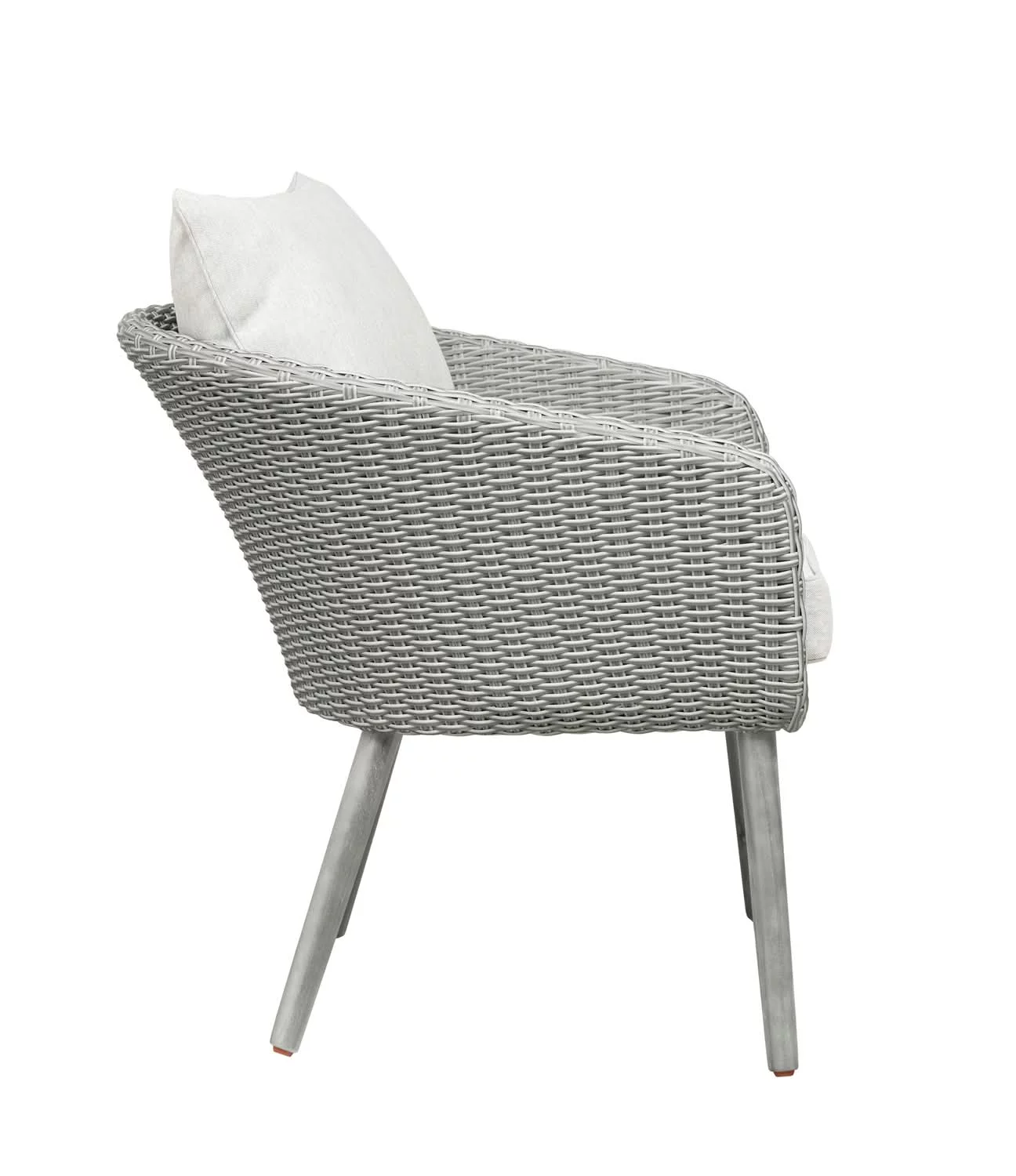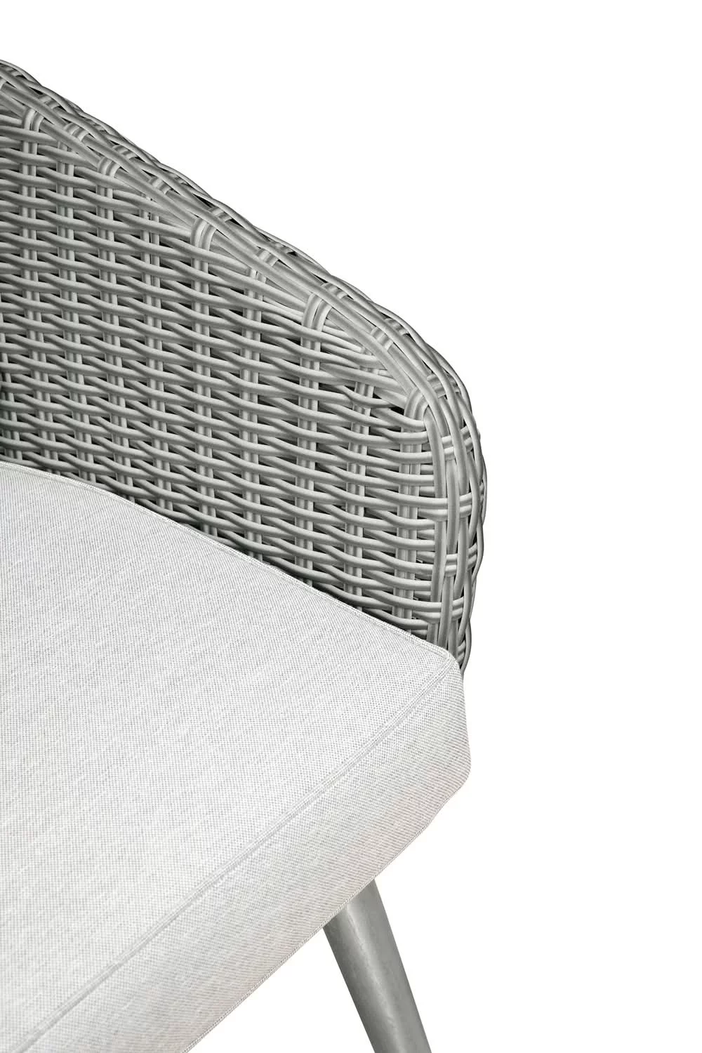 Solidna konstrukcja z ramy aluminiowej oraz nogi z drewna gwarantują stabilność i trwałość mebli przez wiele sezonów. Nowoczesny design w neutralnej kolorystyce szarości doskonale komponuje się z różnymi aranżacjami przestrzeni zewnętrznej, wprowadzając elegancję i przytulny charakter.