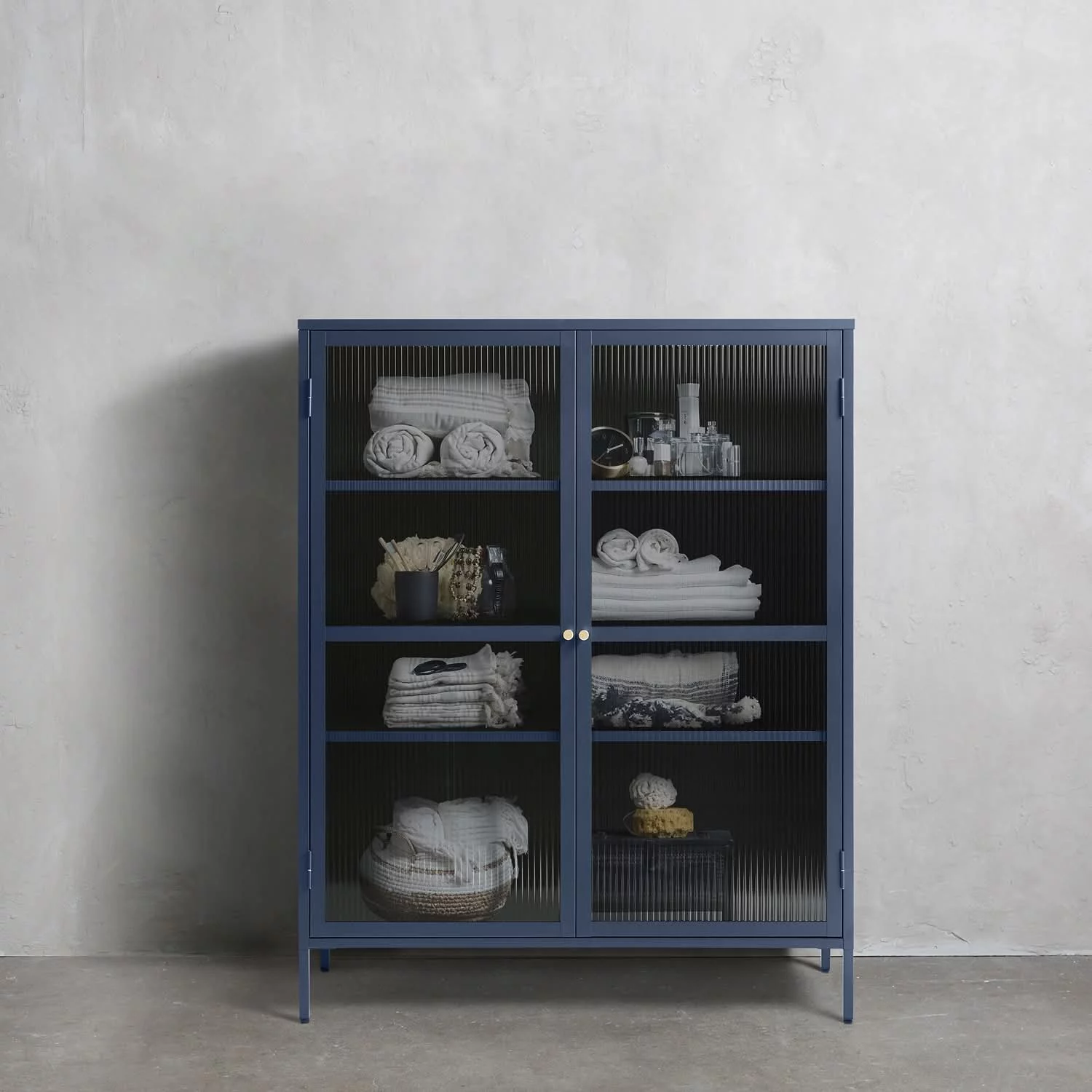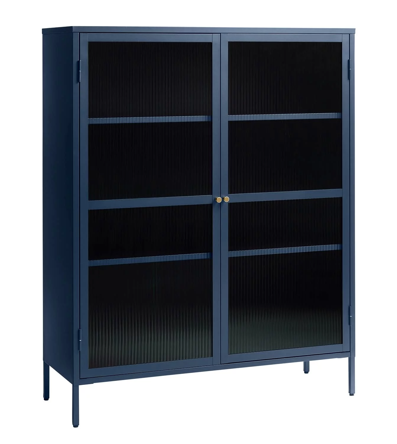 Witryna BRONCO 140 to elegancki i funkcjonalny mebel, który doskonale sprawdzi się w salonie, jadalni lub biurze. Wykonana z hartowanego szkła, stali i metalu, łączy trwałość z nowoczesnym, industrialnym designem w stylu Loft. Przeszklone drzwi uchylne pozwalają wyeksponować dekoracje, książki lub zastawę, a trzy półki zapewniają wygodną organizację przestrzeni.