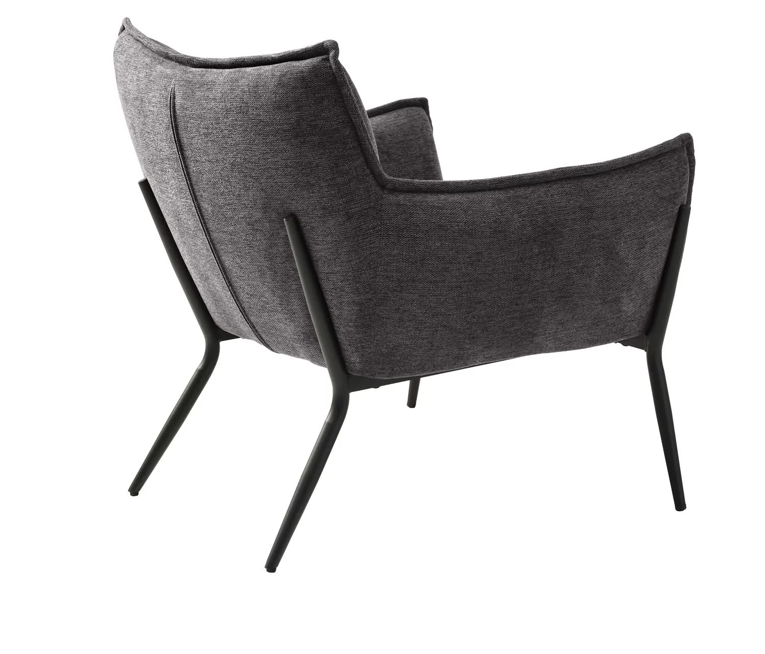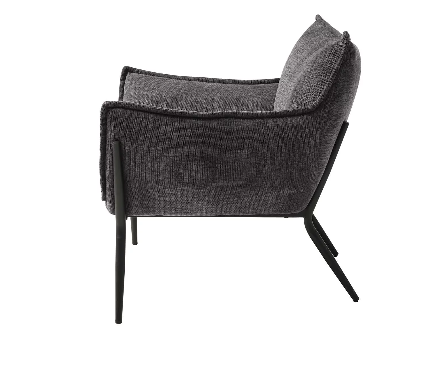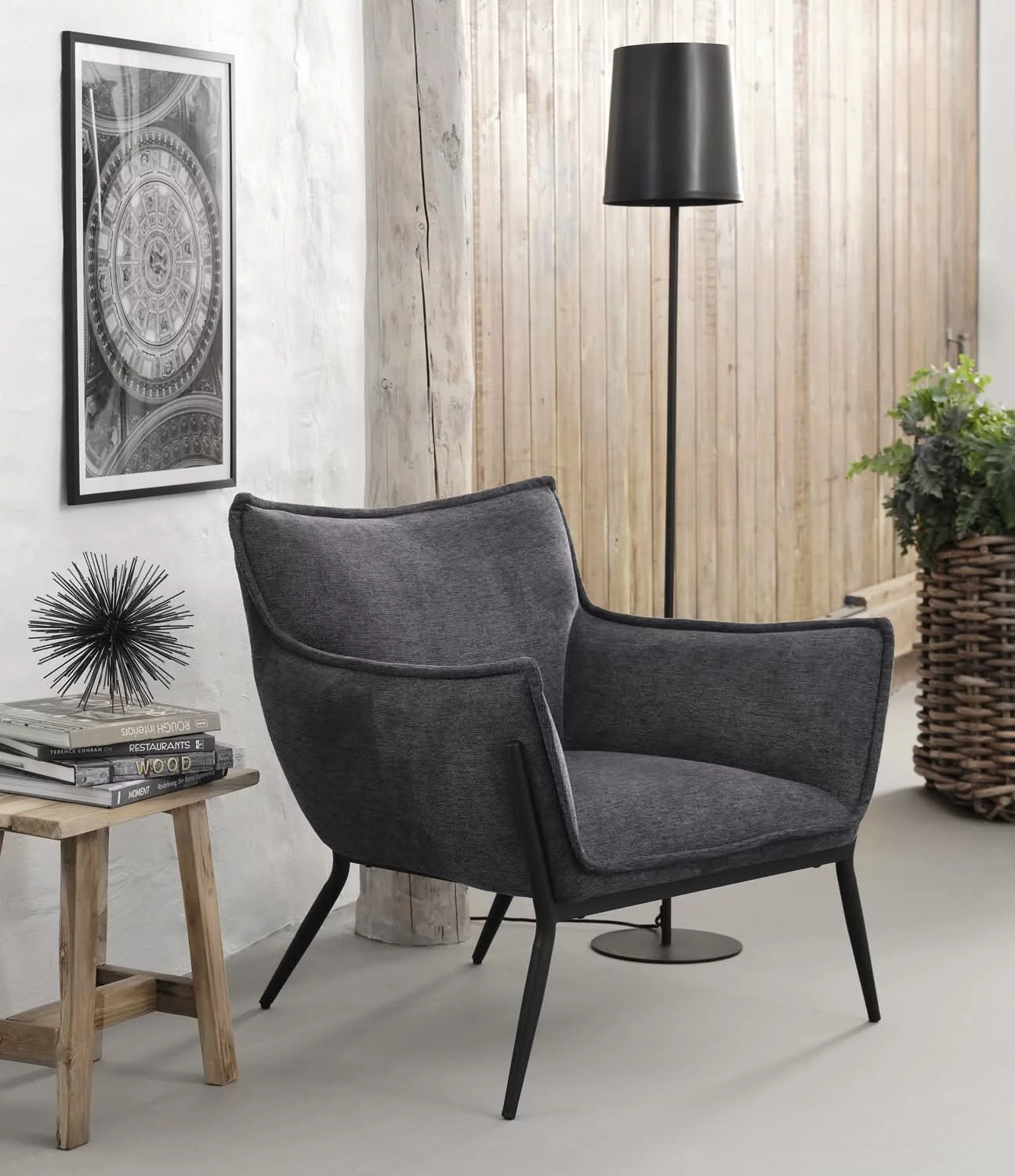Fotel CALGARY to elegancki i wygodny mebel, który doskonale sprawdzi się w salonie. Tapicerowane siedzisko z tkaniny Brego w ciemnoszarym kolorze zapewnia komfort podczas relaksu, a solidne czarne metalowe nogi gwarantują stabilność i trwałość. Minimalistyczny design w stylu Modern wprowadza do wnętrza elegancję i nowoczesny charakter.