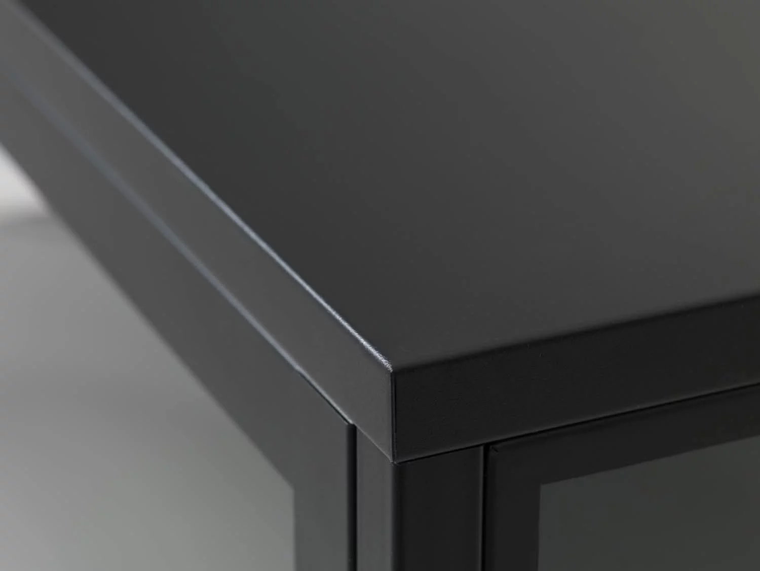 Czarny kolor witryny CARMEL 140 dodaje wnętrzu industrialnego charakteru i nowoczesnej elegancji, dzięki czemu mebel doskonale komponuje się z aranżacjami w stylu Loft oraz nowoczesnymi wnętrzami.