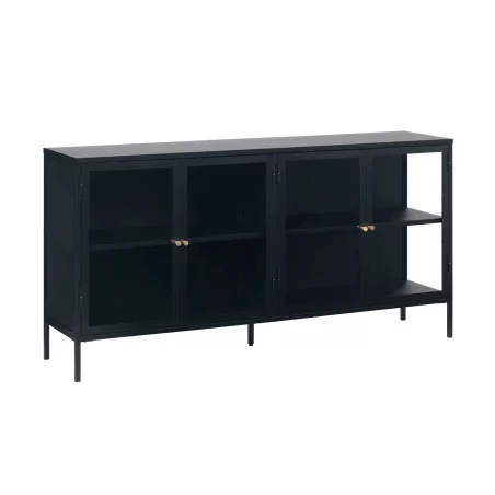Komoda CARMEL 85 to elegancki i funkcjonalny mebel, idealny do salonu, jadalni lub biura. Wykonana z metalu, stali i hartowanego szkła, łączy trwałość z nowoczesnym, loftowym designem. Cztery uchylne drzwi z przeszklonymi frontami pozwalają wyeksponować dekoracje lub przechowywać przedmioty, a praktyczne półki wewnątrz zapewniają wygodne miejsce do organizacji przestrzeni.