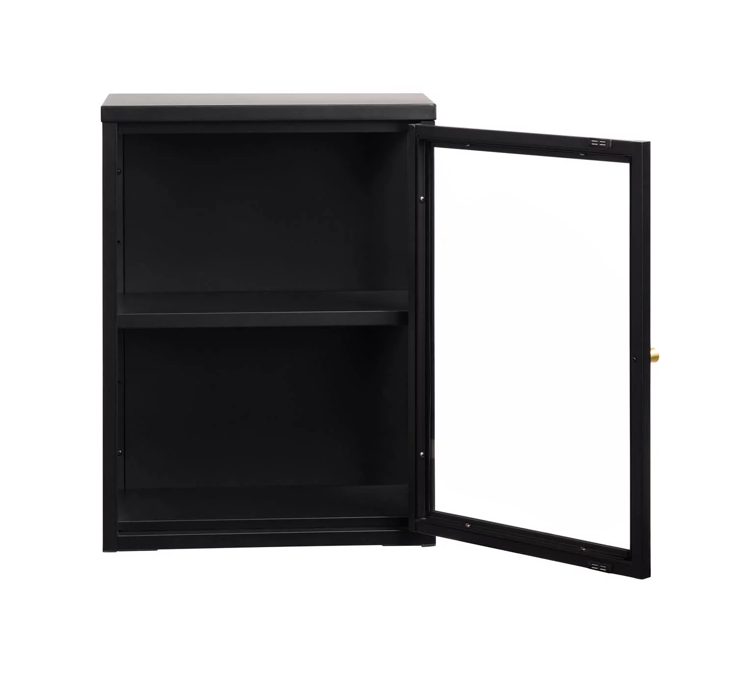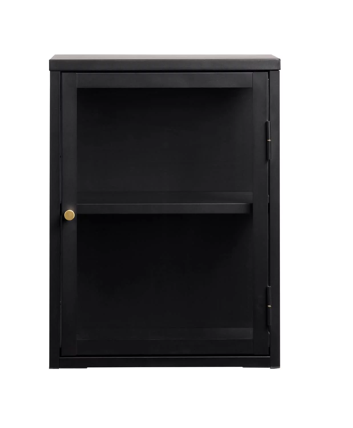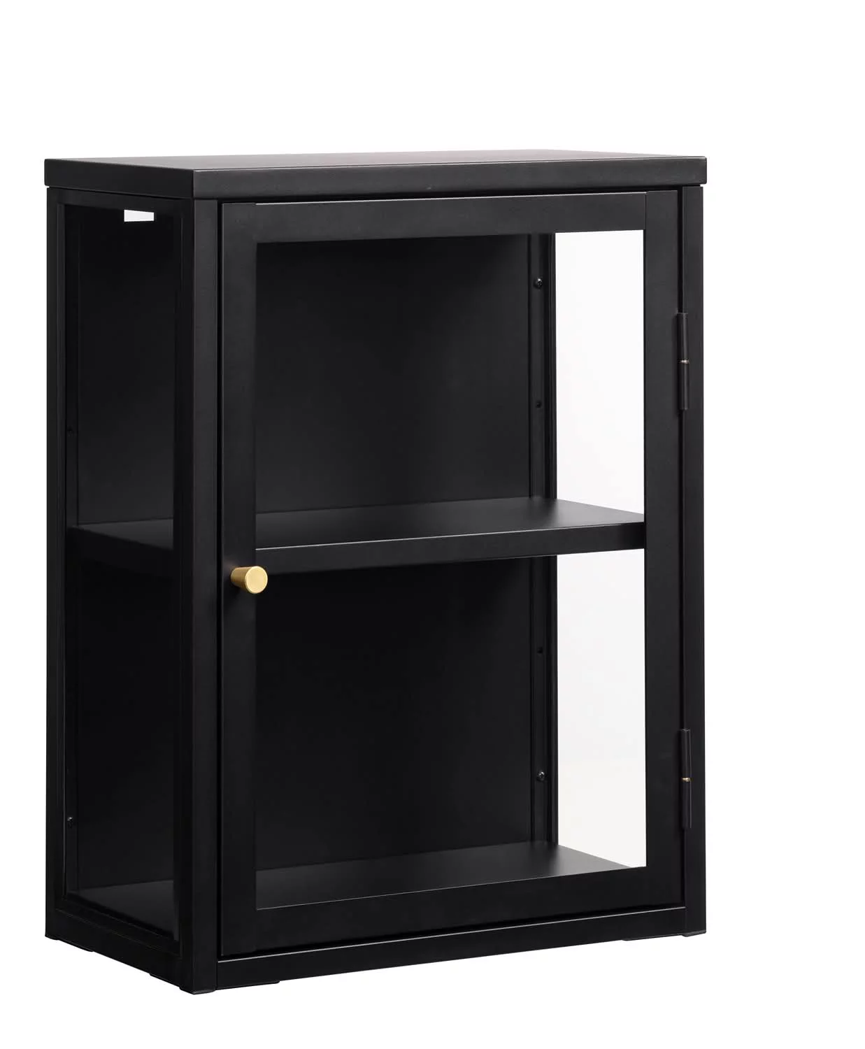 Witryna ścienna CARMEL 60 to funkcjonalny i stylowy mebel wiszący, idealny do salonu, kuchni lub biura. Wykonana z metalu, stali i hartowanego szkła, łączy trwałość z nowoczesnym, loftowym designem. Jedno uchylne drzwi z przeszklonym frontem pozwala wyeksponować dekoracje, książki lub drobne przedmioty, a wewnętrzna półka zapewnia praktyczne miejsce do przechowywania.