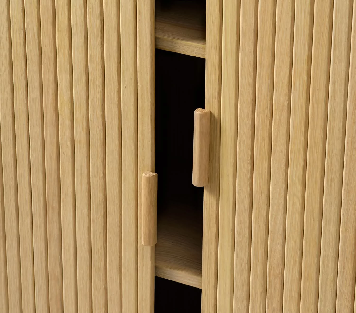 Komoda dwudrzwiowa CAVO to połączenie funkcjonalności i minimalistycznego designu w stylu Japandi. Wykonana z wysokiej jakości płyty MDF i płyty fornirowanej, zachwyca naturalnym wykończeniem i subtelnymi ryflowanymi frontami, które dodają jej lekkości i nowoczesnego charakteru.