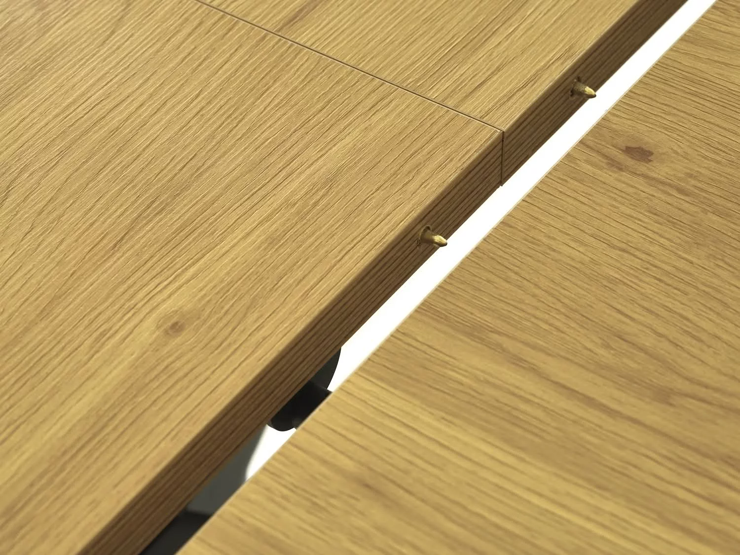 Stół CESURA 90x160–200 łączy w sobie nowoczesny styl loftowy z praktyczną funkcjonalnością. Prostokątny blat wykonany z płyty laminowanej w ciepłym odcieniu dębu naturalnego prezentuje naturalne usłojenie drewna, które dodaje wnętrzu przytulności i elegancji. Dzięki możliwości rozłożenia do 200 cm, stół z łatwością pomieści nawet 8–10 osób, co czyni go idealnym wyborem zarówno do codziennych posiłków, jak i większych spotkań rodzinnych.