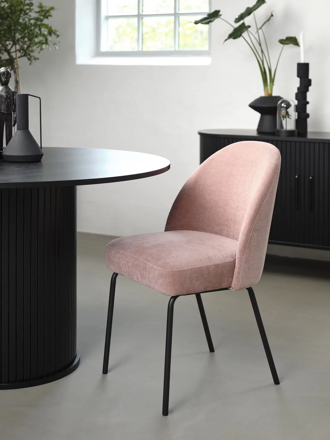 Krzesło CRESTON to elegancki i funkcjonalny mebel, który doskonale sprawdzi się w jadalni i salonie. Tapicerowane siedzisko wykonane z wysokiej jakości tkaniny zapewnia wygodę, a minimalistyczny design w połączeniu z prostymi, czarnymi metalowymi nogami nadaje krzesłu nowoczesny charakter w stylu Scandi i Modern.