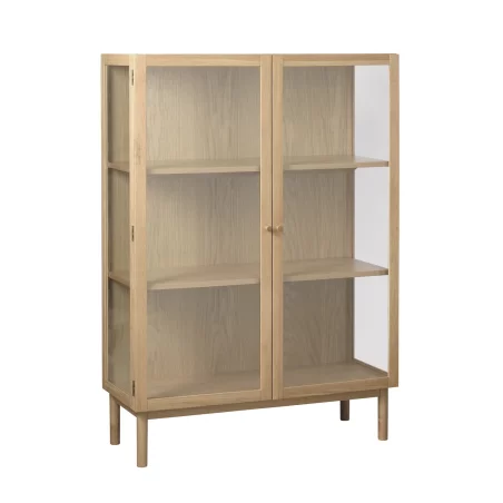 Witryna ELBA 140 to elegancki i funkcjonalny mebel, który doskonale sprawdzi się w salonie lub jadalni. Wykonana z połączenia MDF, płyty fornirowanej i drewna w kolorze dębu naturalnego, łączy trwałość z przytulnym, naturalnym wyglądem.