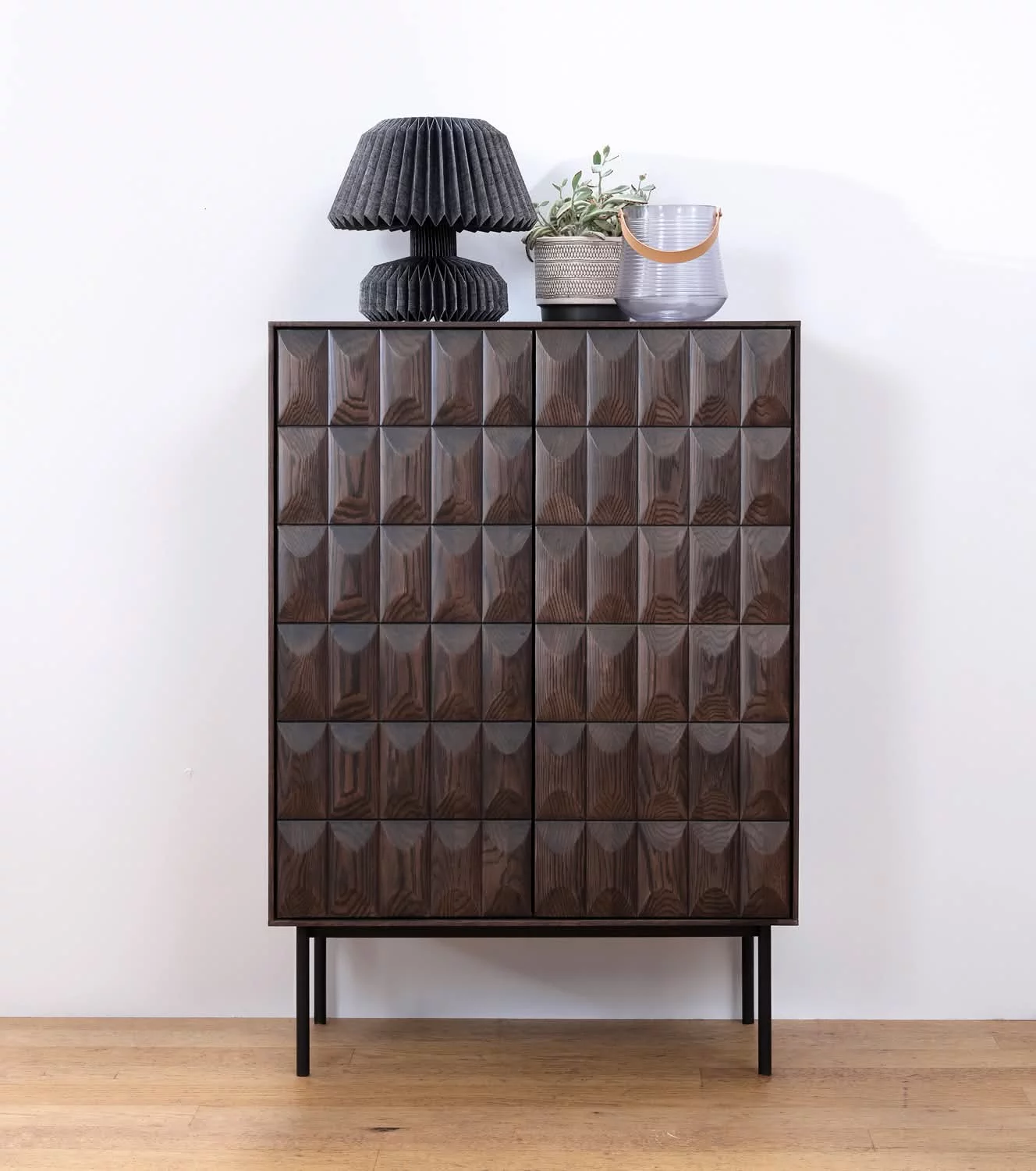 Wykonana z MDF i płyty fornirowej w brązowym kolorze z efektem drewna, komoda LATINA prezentuje elegancki, nowoczesny design. Minimalistyczna forma i połączenie drewna z detalami w stylu loftowym sprawiają, że mebel doskonale komponuje się z wnętrzami w stylu Modern i Loft.