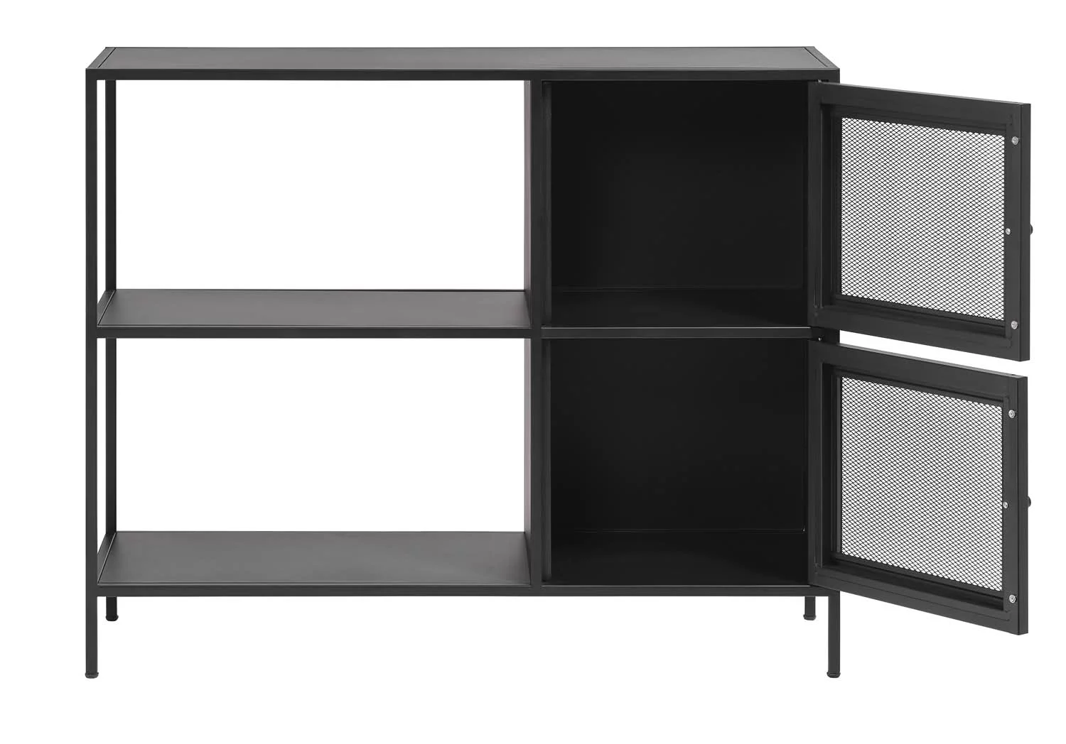 Wyposażony w dwoje uchylnych drzwi i jedną półkę, regał zapewnia praktyczne miejsce do przechowywania książek, dekoracji czy drobiazgów, zachowując przy tym elegancki, nowoczesny wygląd.