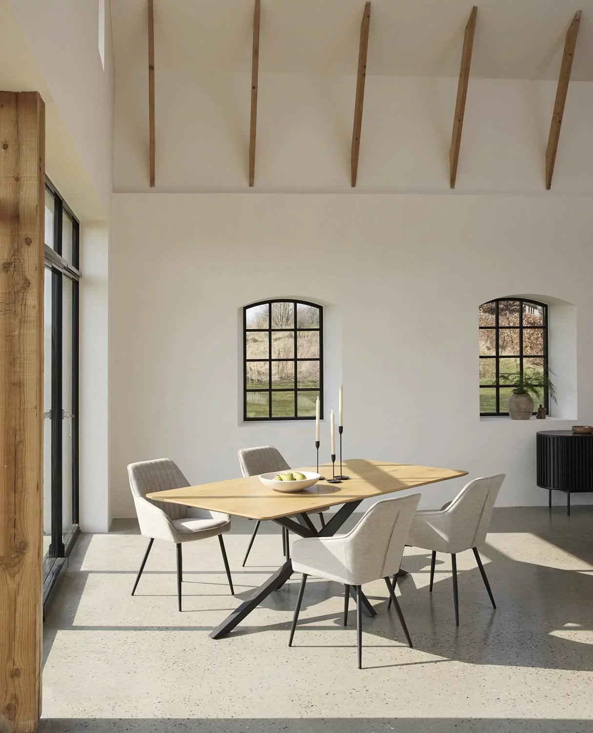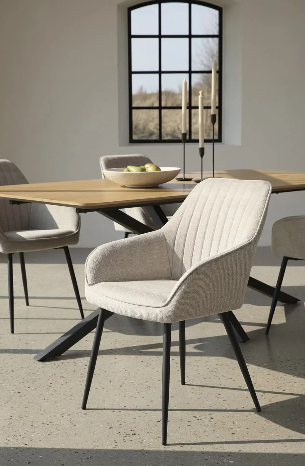 Komfortowe podłokietniki zwiększają wygodę użytkowania, a stabilny metalowy stelaż w kolorze czarnym zapewnia trwałość i nowoczesny akcent. Proste nogi i precyzyjne wykończenie sprawiają, że krzesło doskonale wpasuje się w aranżacje w stylu modern i loft.