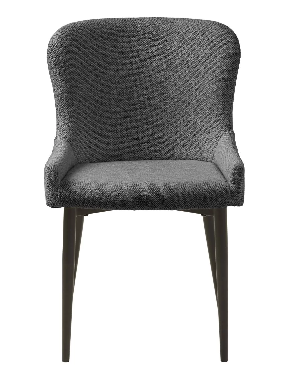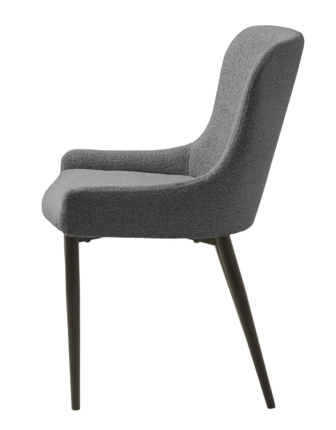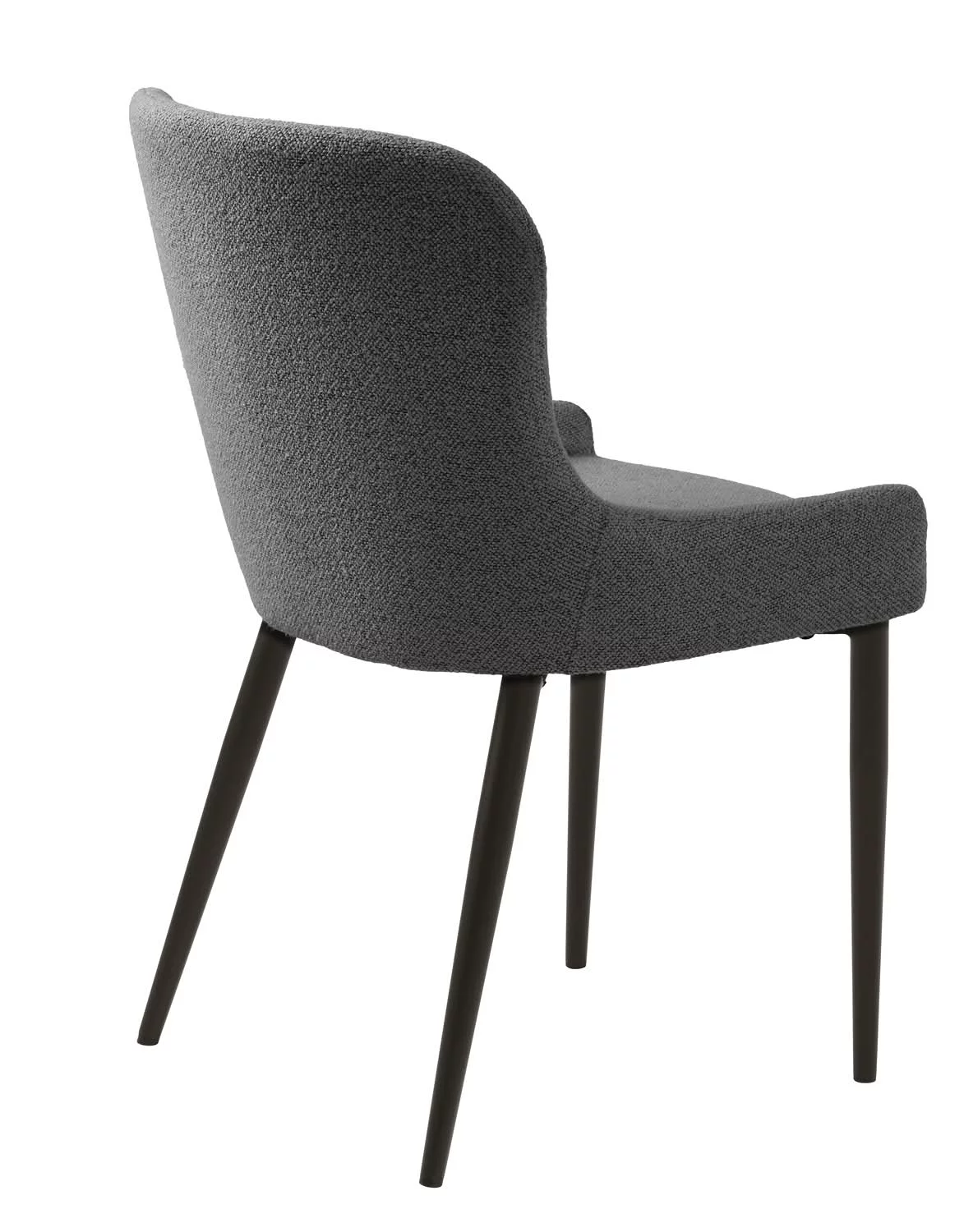 Siedzisko pokryte jest miękką i przyjemną w dotyku tkaniną boucle, która zachwyca swoją fakturą i eleganckim wyglądem. Dzięki solidnej konstrukcji oraz metalowym nogom w czarnym kolorze, krzesło zapewnia stabilność i trwałość przez długie lata użytkowania.