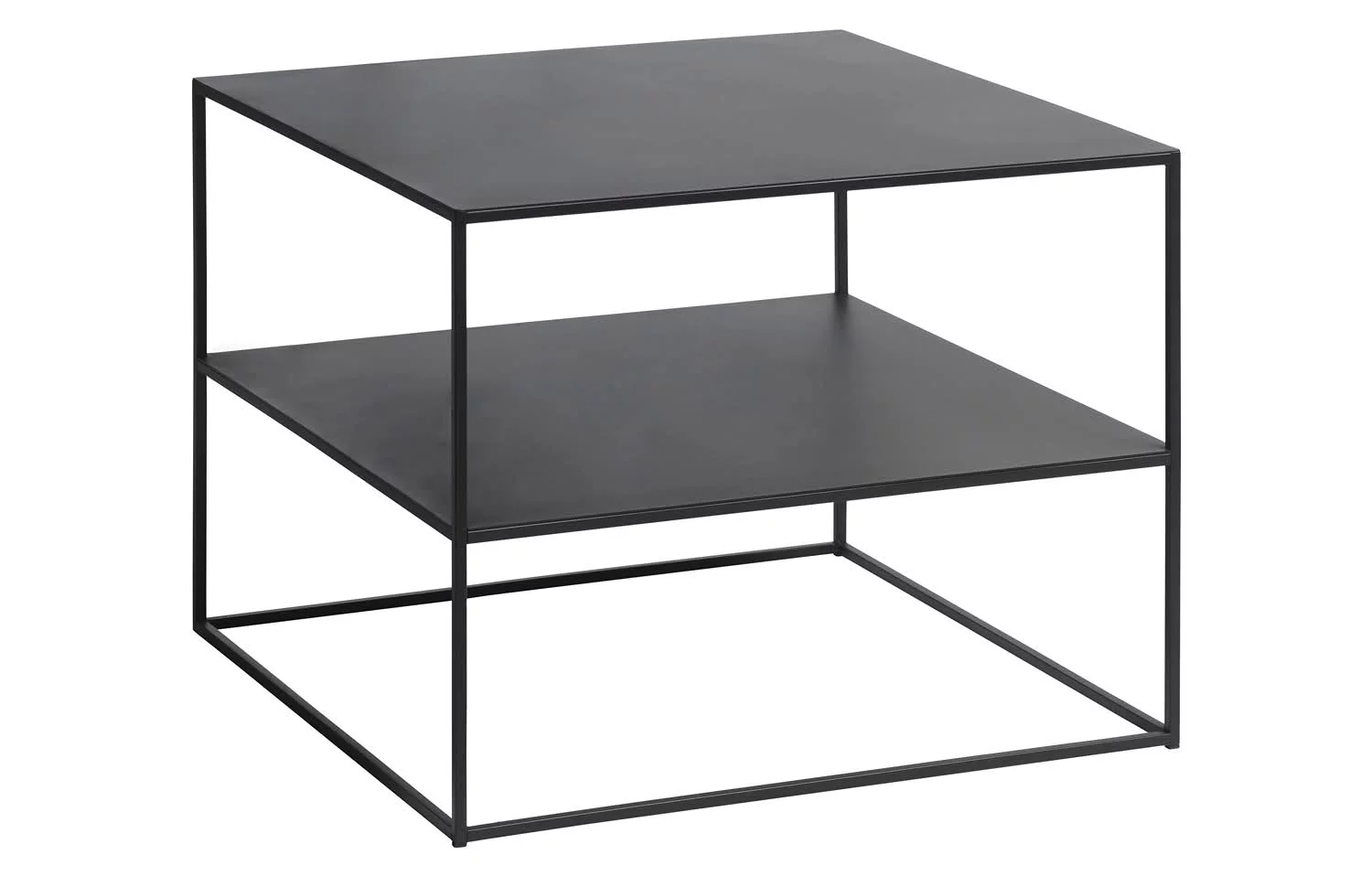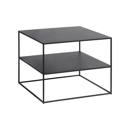 Blat stolika został wykonany z metalu w czarnym kolorze, co nadaje mu industrialnego charakteru i wyjątkowej trwałości. Metalowa podstawa w tej samej tonacji gwarantuje stabilność oraz spójność wizualną. Dodatkowa półka pod blatem pozwala na przechowywanie drobiazgów, utrzymując porządek na powierzchni stołu. Regulowane nóżki umożliwiają dopasowanie wysokości do indywidualnych potrzeb.