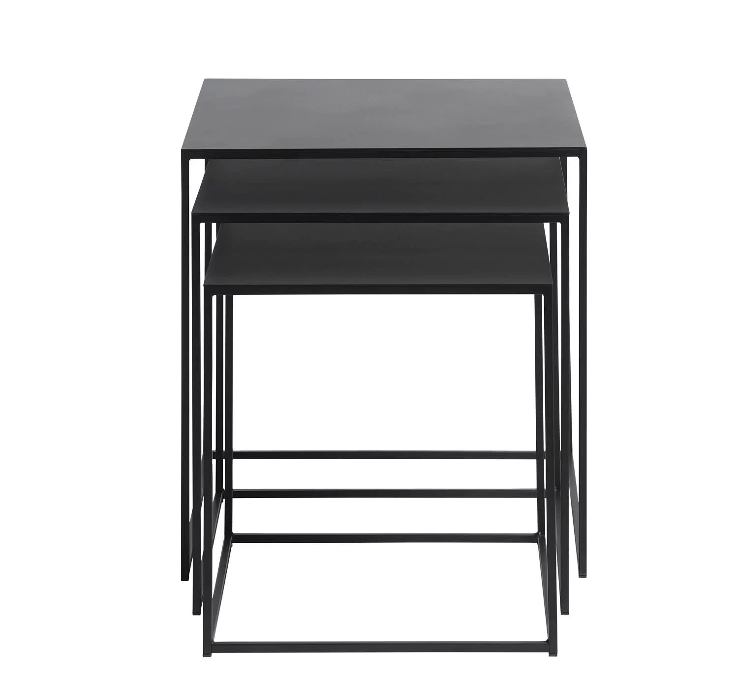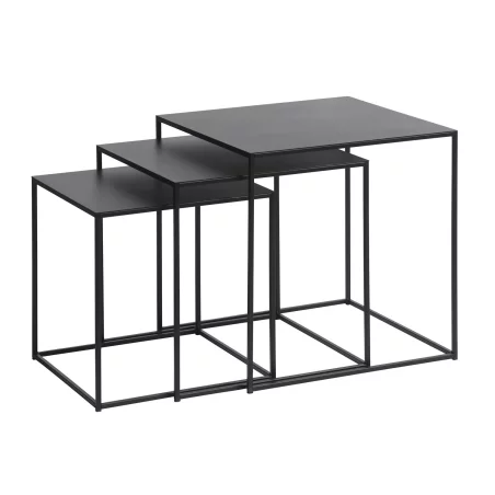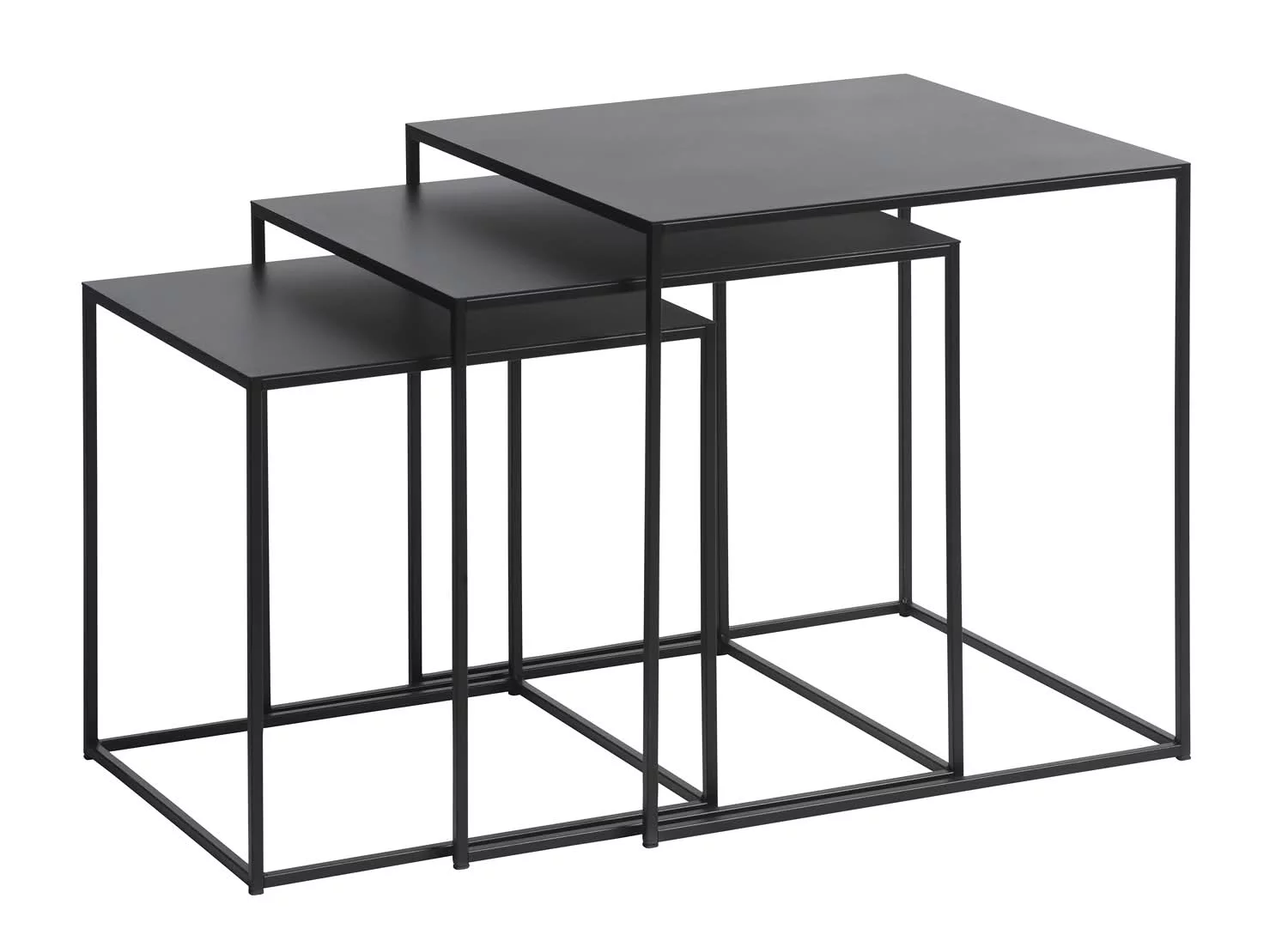 Całość wykonana jest z trwałego metalu w czarnym kolorze, dzięki czemu stoliki charakteryzują się solidnością i stabilnością. Kwadratowe blaty i proste linie podkreślają ich industrialny charakter, jednocześnie wprowadzając do wnętrza nutę elegancji i nowoczesności.