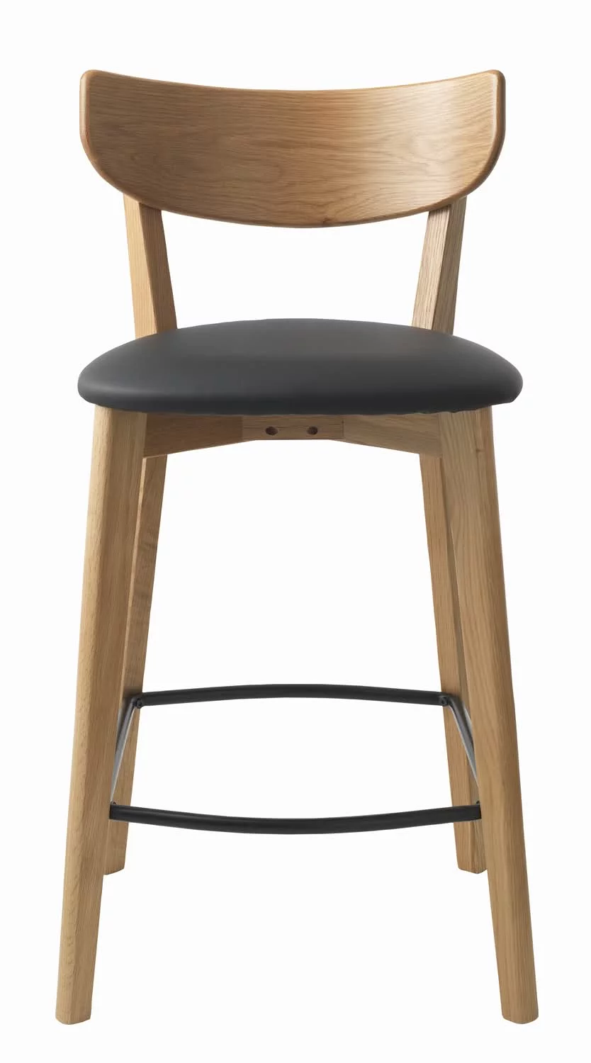 Siedzisko pokryte miękką i łatwą w utrzymaniu czarną ekoskórą zapewnia komfort podczas siedzenia, a solidna, drewniana konstrukcja gwarantuje stabilność i trwałość. Hoker sprawdzi się idealnie zarówno w salonie, jadalni, jak i w przestrzeniach komercyjnych, takich jak bary czy lokale gastronomiczne.