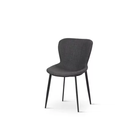 Siedzisko zostało pokryte miękką i przyjemną w dotyku ciemnoszarą tkaniną tapicerowaną, która zapewnia komfort podczas codziennego użytkowania. Solidny metalowy stelaż w czarnym kolorze gwarantuje stabilność i trwałość konstrukcji, dzięki czemu krzesło będzie służyć przez wiele lat.