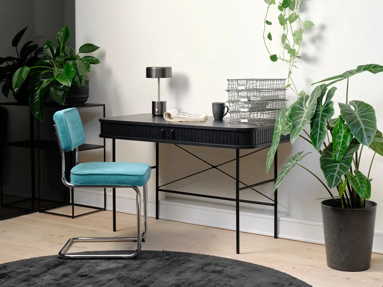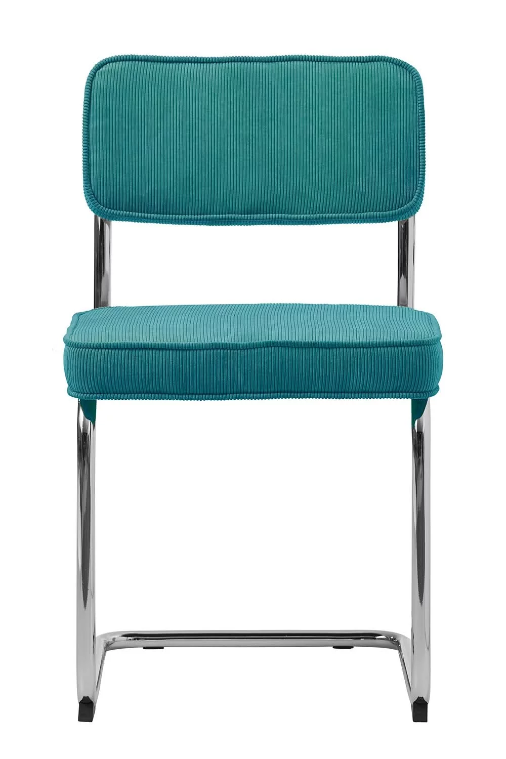 Siedzisko pokryte zostało miękką i przyjemną w dotyku tkaniną sztruksową, która nadaje meblowi wyjątkowego uroku i zapewnia wygodę podczas siedzenia. Krzesło osadzone jest na nowoczesnych metalowych płozach, które dodają mu lekkości oraz stabilności, a brak podłokietników sprawia, że z łatwością wsuniesz je pod stół, oszczędzając przestrzeń.