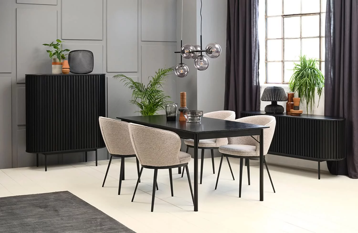 Stół SAVONA to propozycja dla miłośników eleganckiej, nowoczesnej estetyki. Jego minimalistyczna forma i czarna kolorystyka sprawiają, że idealnie wpisuje się w styl modern, dodając wnętrzu szyku i wyrazistego charakteru. To funkcjonalny stół, który równie dobrze sprawdzi się w salonie jak i jadalni.