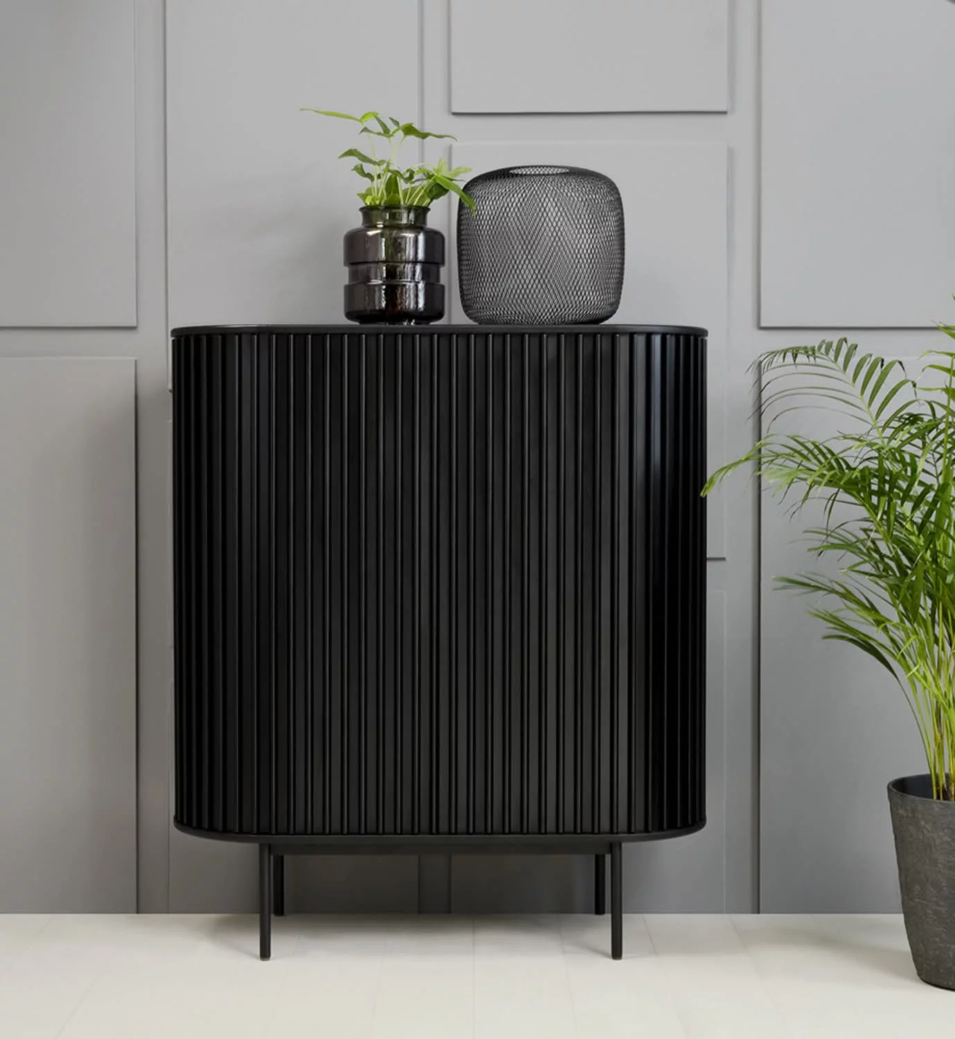 Komoda SIENA to elegancki mebel o wyrazistym charakterze, który zachwyca subtelną formą i dekoracyjnym wykończeniem inspirowanym stylem Japandi. Jej czarna, ryflowana powierzchnia dodaje wnętrzu szlachetności i nowoczesnej harmonii, idealnie wpisując się w aranżacje łączące minimalizm z naturalnymi akcentami.