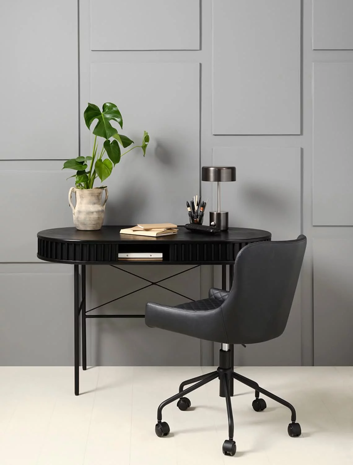 Biurko SIENA to nowoczesny i funkcjonalny mebel w stylu Japandi, który łączy minimalistyczną estetykę z praktycznym zastosowaniem. Jego czarna, ryflowana powierzchnia wprowadza do wnętrza elegancję oraz subtelny, uporządkowany charakter.