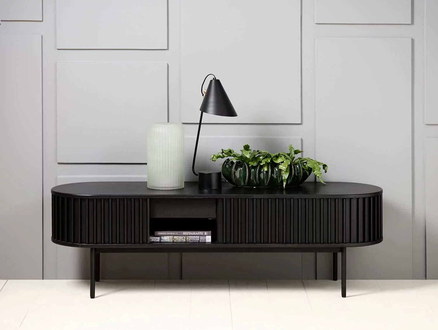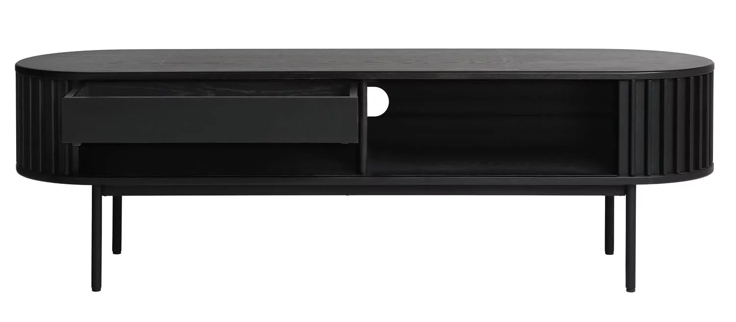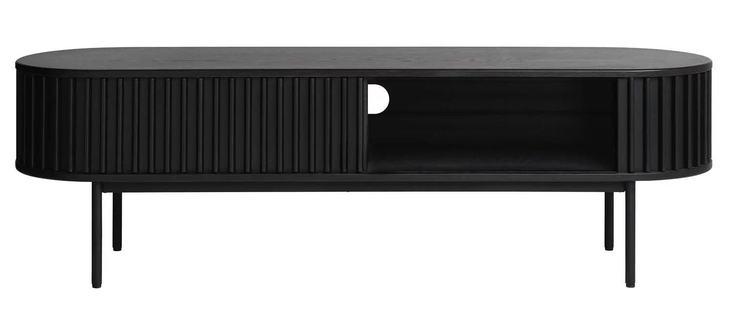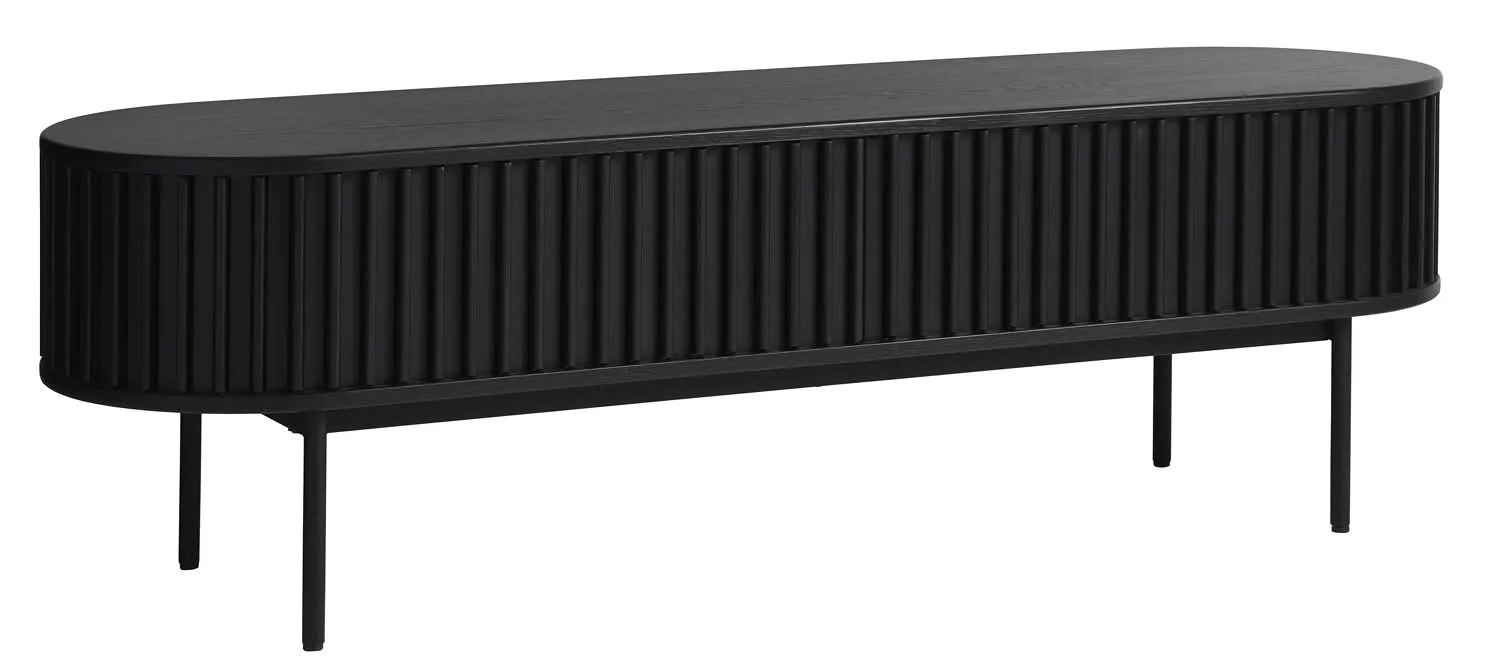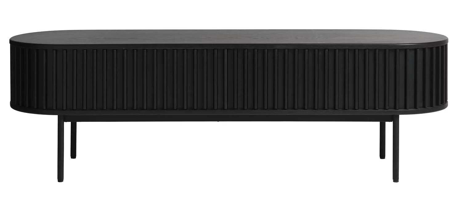 Szafka RTV ryflowana SIENA czarna doskonale sprawdzi się w salonie, stanowiąc praktyczny i elegancki element wyposażenia. To mebel, który łączy nowoczesny design z wygodą użytkowania i trwałością na lata.