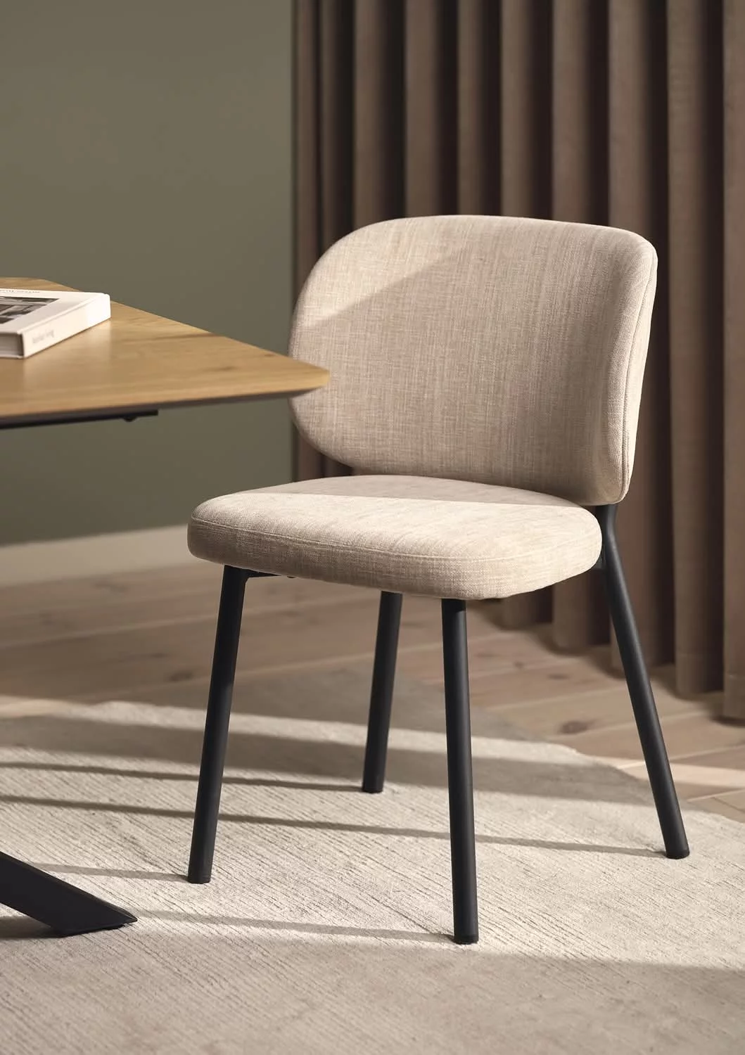 Krzesło tapicerowane SWAN lniane łączy wyjątkowy styl z funkcjonalnością, wprowadzając do wnętrza harmonijną i przyjemną atmosferę. Idealne do jadalni, salonu czy biura, stanowi eleganckie i wygodne uzupełnienie każdej aranżacji.
