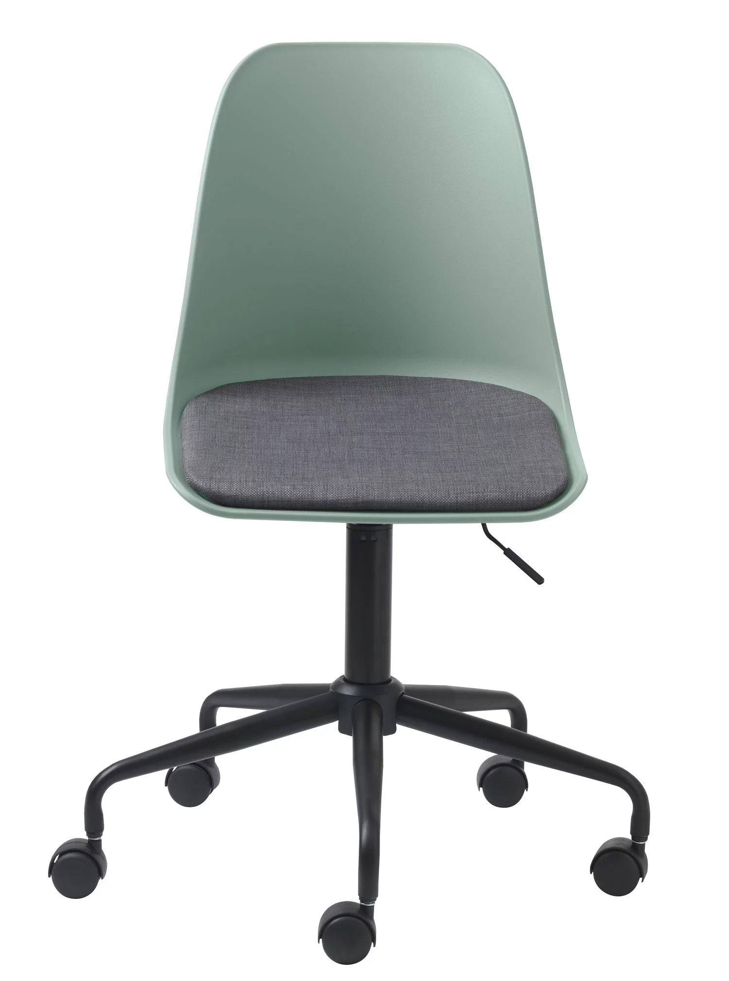 Siedzisko pokryte jest miękką w dotyku tkaniną, zapewniającą komfort podczas długiego użytkowania. Dzięki funkcji regulacji wysokości oraz obrotowej podstawie na kółkach, krzesło gwarantuje pełną swobodę ruchu i dopasowanie do indywidualnych potrzeb użytkownika.