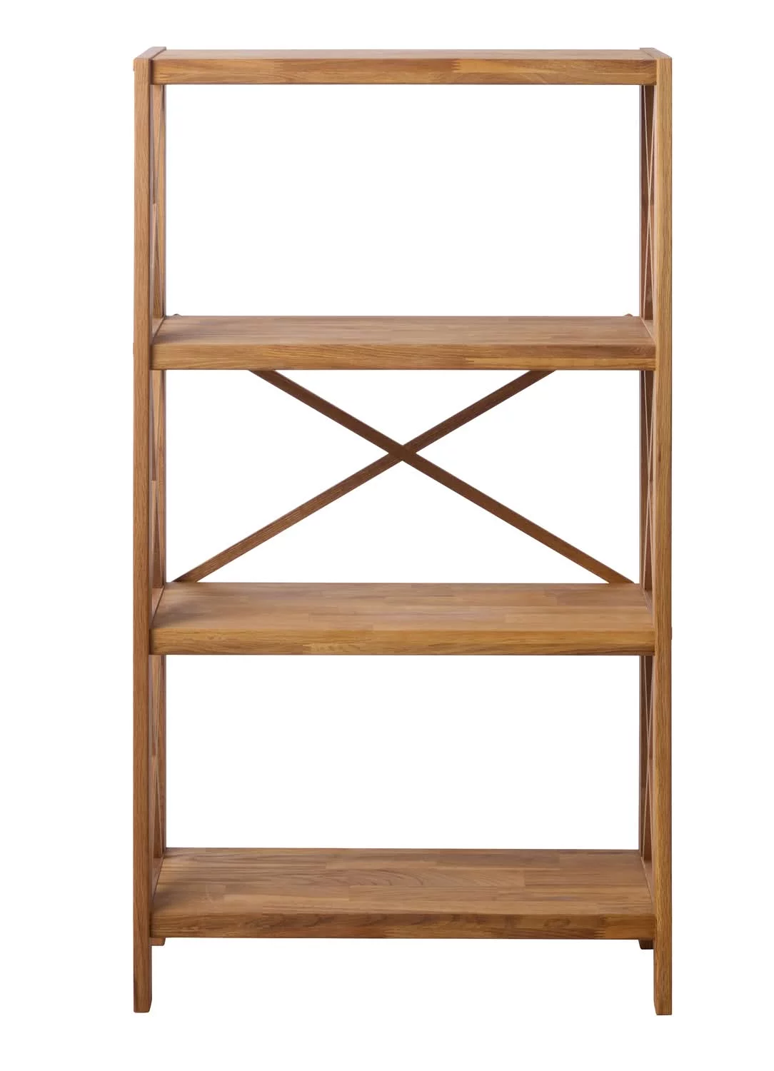 Regał X-SHELF 124 to funkcjonalny mebel wykonany z drewna dębowego w kolorze dąb naturalny, który wnosi do wnętrza ciepło i naturalny charakter. Otwarta konstrukcja z trzema półkami pozwala na praktyczne przechowywanie książek, dekoracji i innych przedmiotów, jednocześnie eksponując je w atrakcyjny sposób.