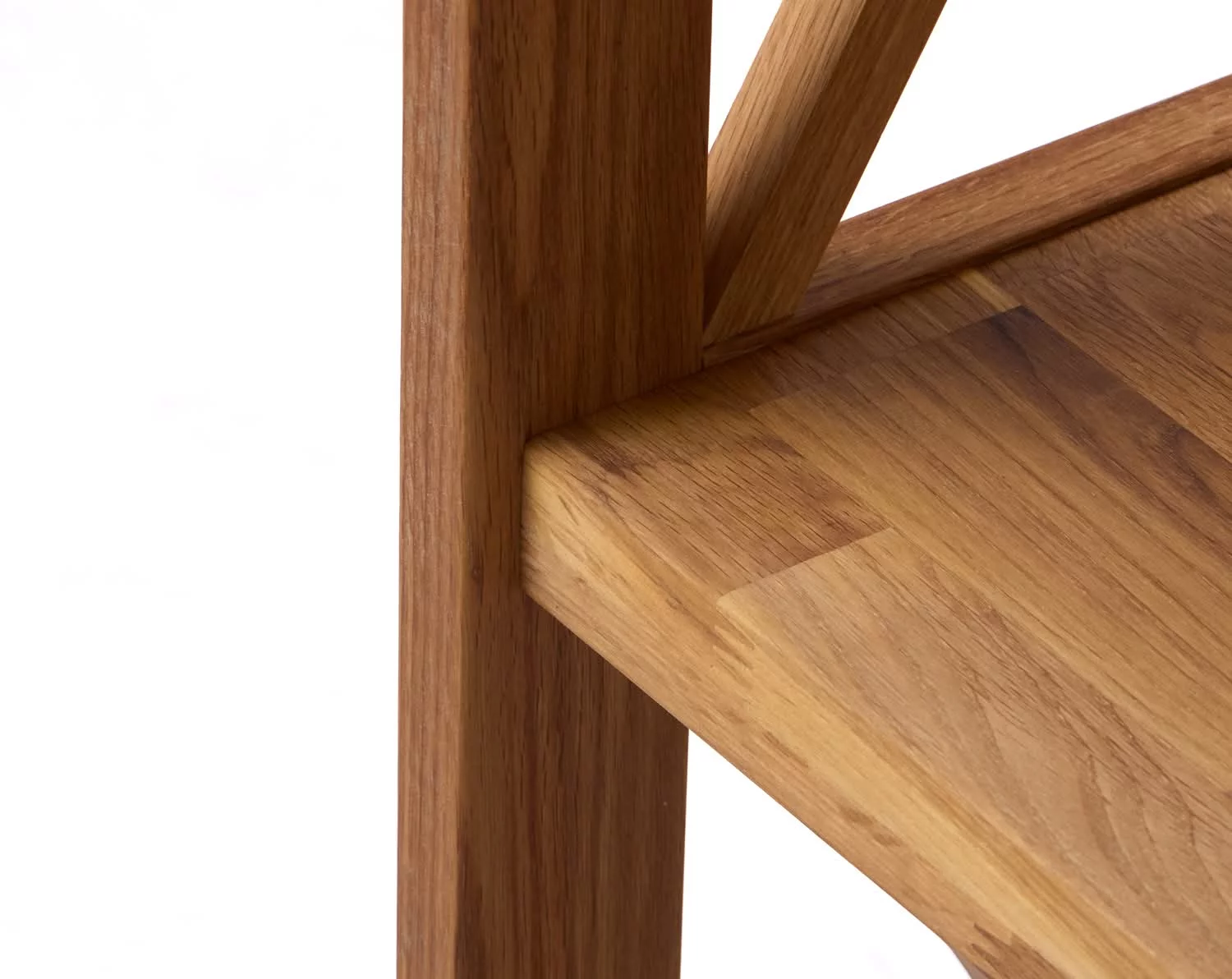 Regał X-SHELF 161 to przestronny mebel wykonany z wysokiej jakości drewna dębowego w naturalnym odcieniu dąb naturalny. Dzięki otwartej konstrukcji z czterema półkami, regał oferuje dużo miejsca do przechowywania książek, dekoracji czy drobnych akcesoriów, eksponując je w estetyczny sposób.