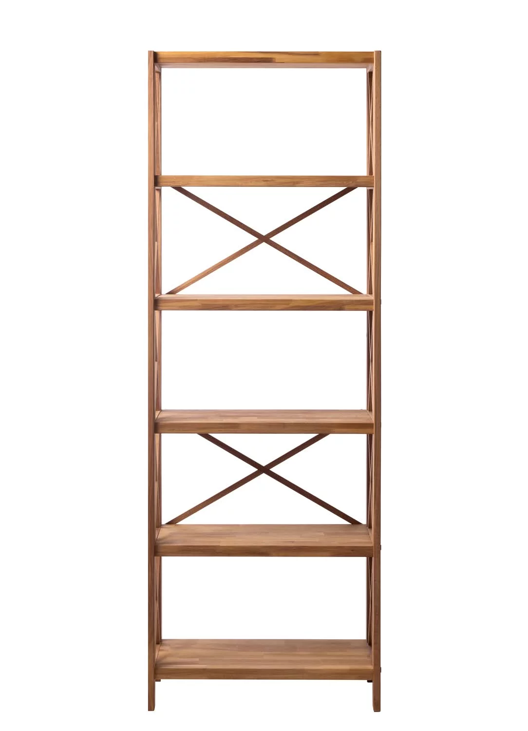 Regał X-SHELF 198 to elegancki mebel wykonany w całości z drewna dębowego w naturalnym odcieniu. Posiada pięć solidnych półek, które zapewniają przestronne miejsce do przechowywania książek, dekoracji czy akcesoriów, jednocześnie eksponując je w estetyczny sposób.