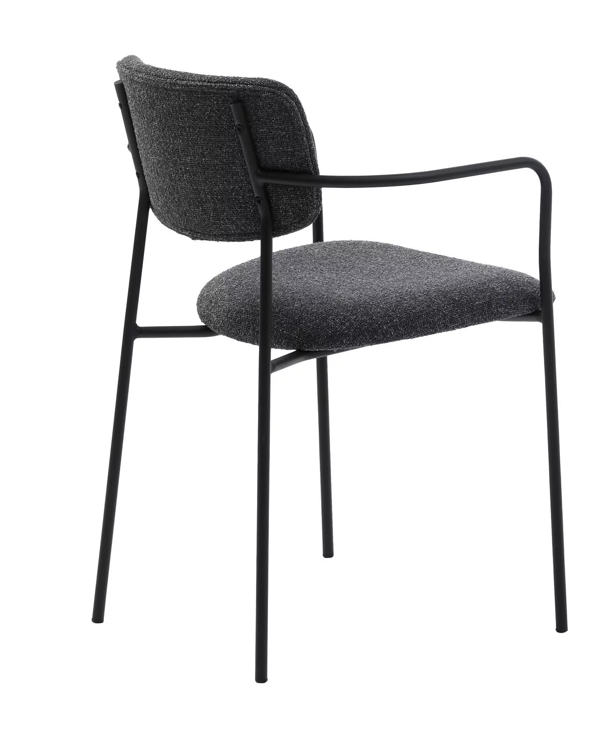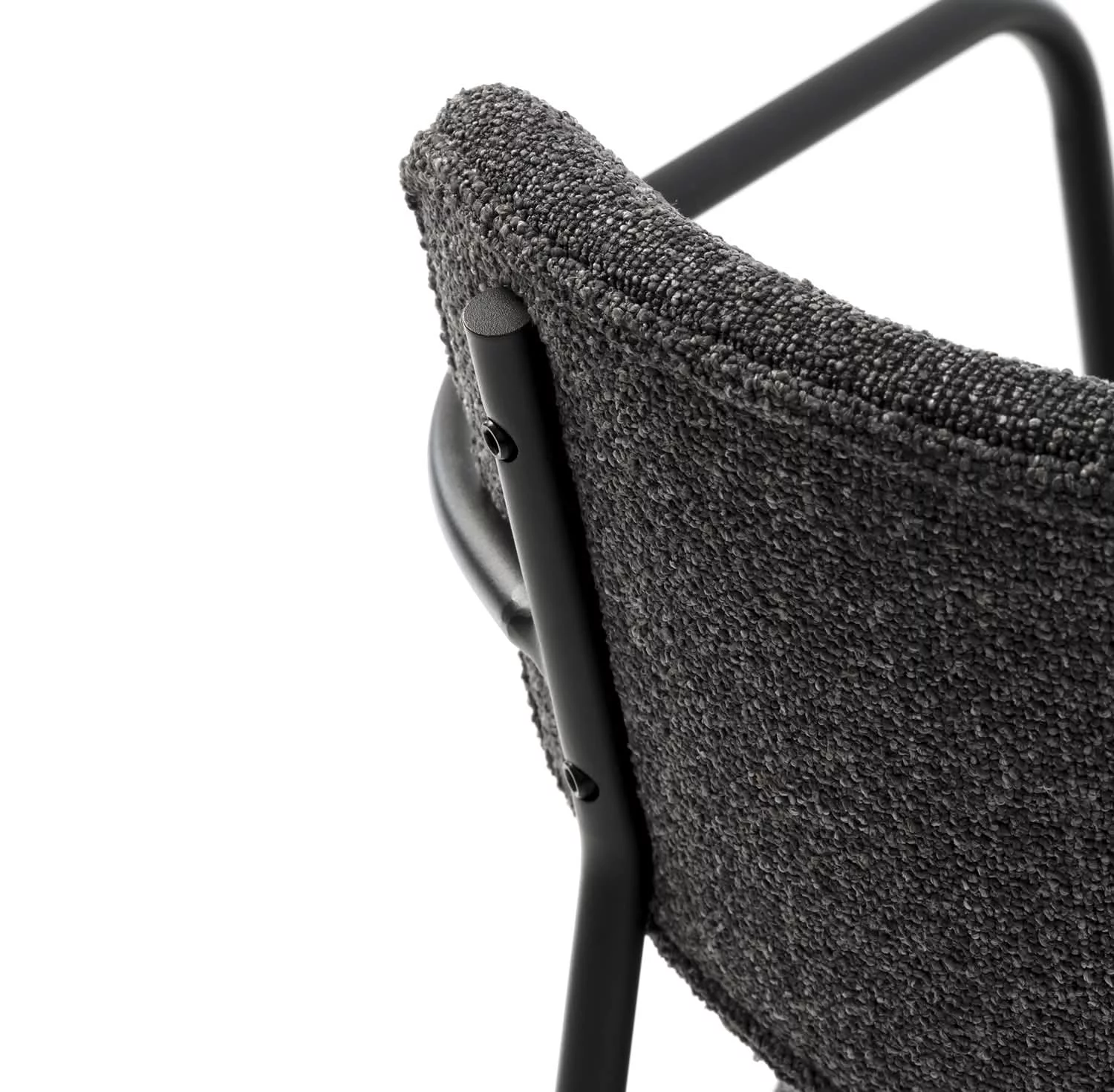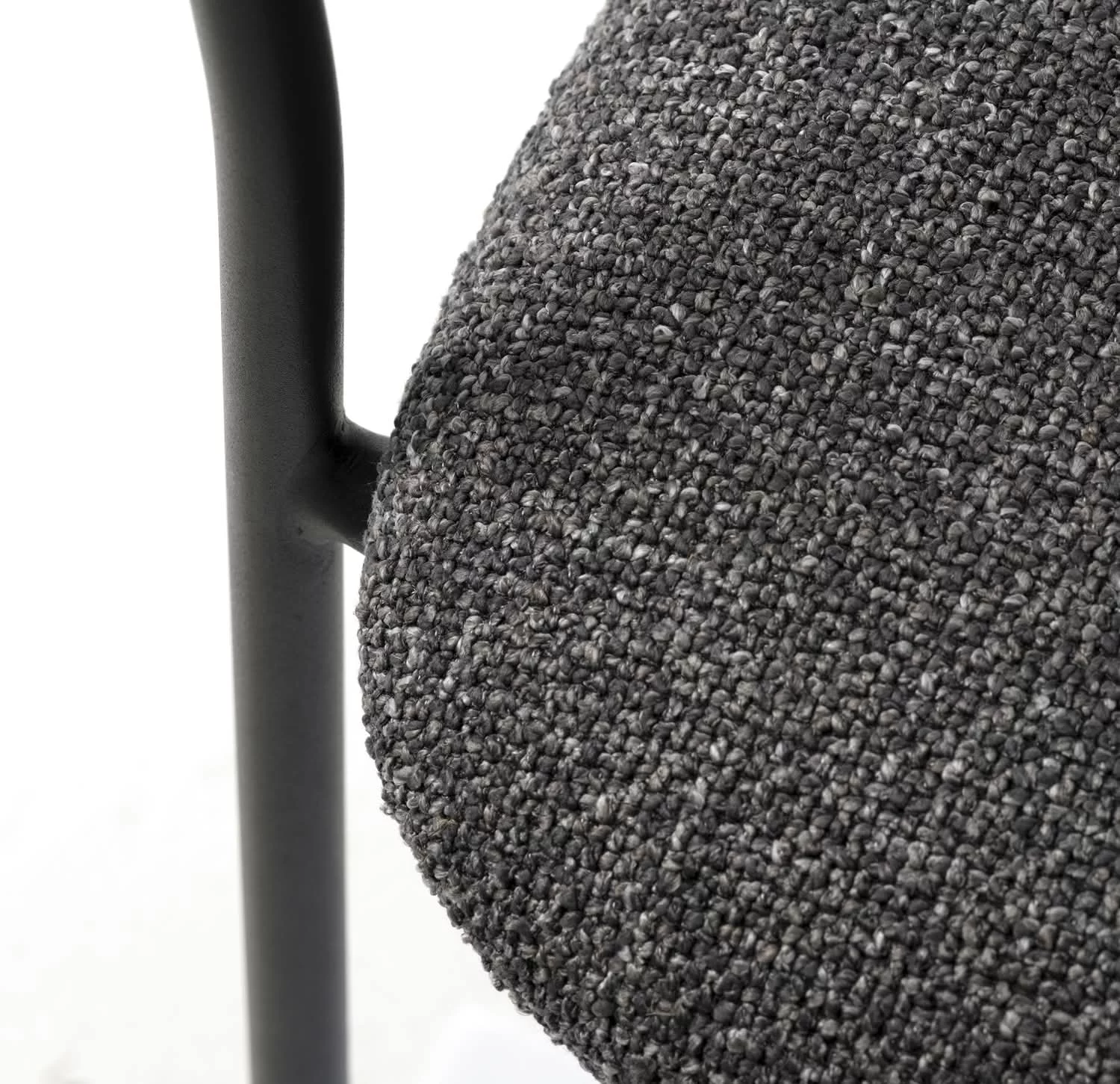 Siedzisko oraz oparcie zostały wykonane z wysokiej jakości tkaniny, zapewniającej wygodę podczas długiego użytkowania. Metalowa rama nadaje krzesłu stabilności, a jednocześnie lekkiej, nowoczesnej formy, która harmonijnie komponuje się z różnymi aranżacjami wnętrz.