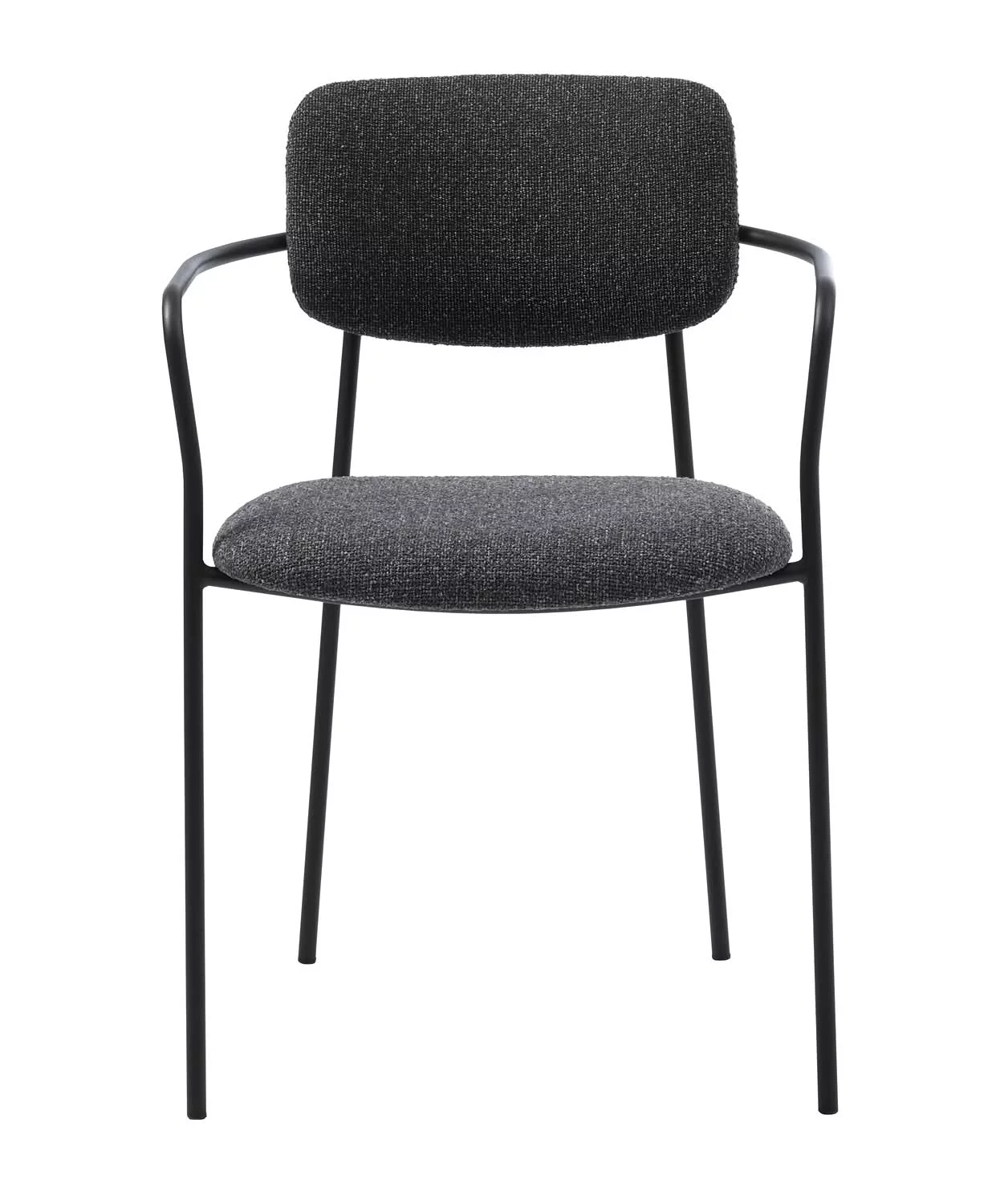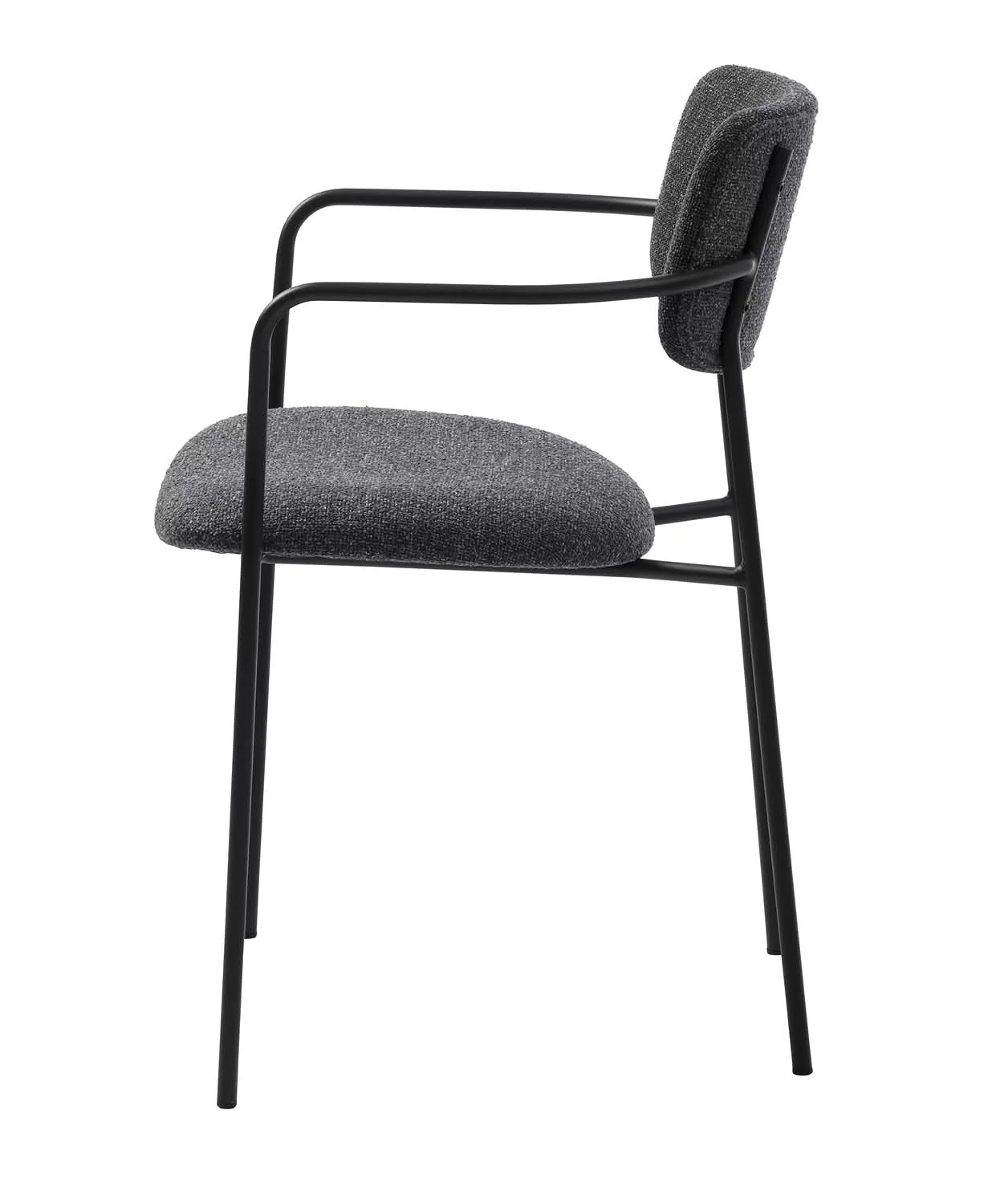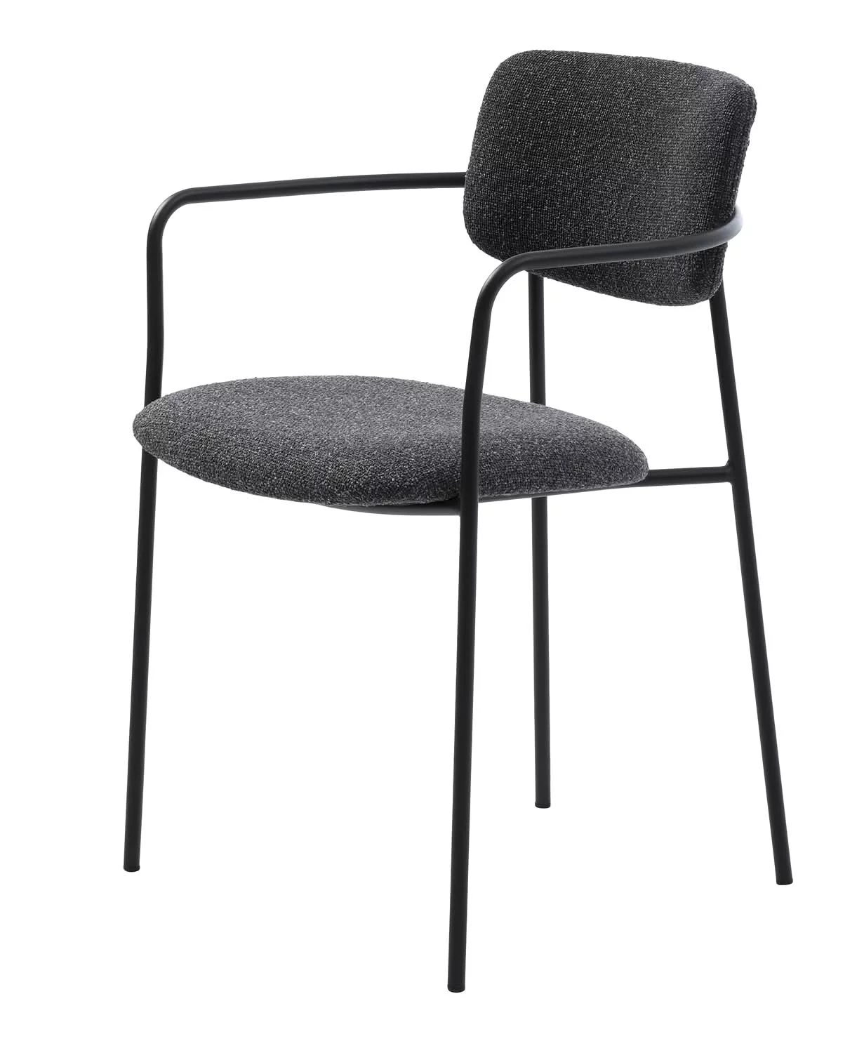 Siedzisko oraz oparcie zostały wykonane z wysokiej jakości tkaniny, zapewniającej wygodę podczas długiego użytkowania. Metalowa rama nadaje krzesłu stabilności, a jednocześnie lekkiej, nowoczesnej formy, która harmonijnie komponuje się z różnymi aranżacjami wnętrz.