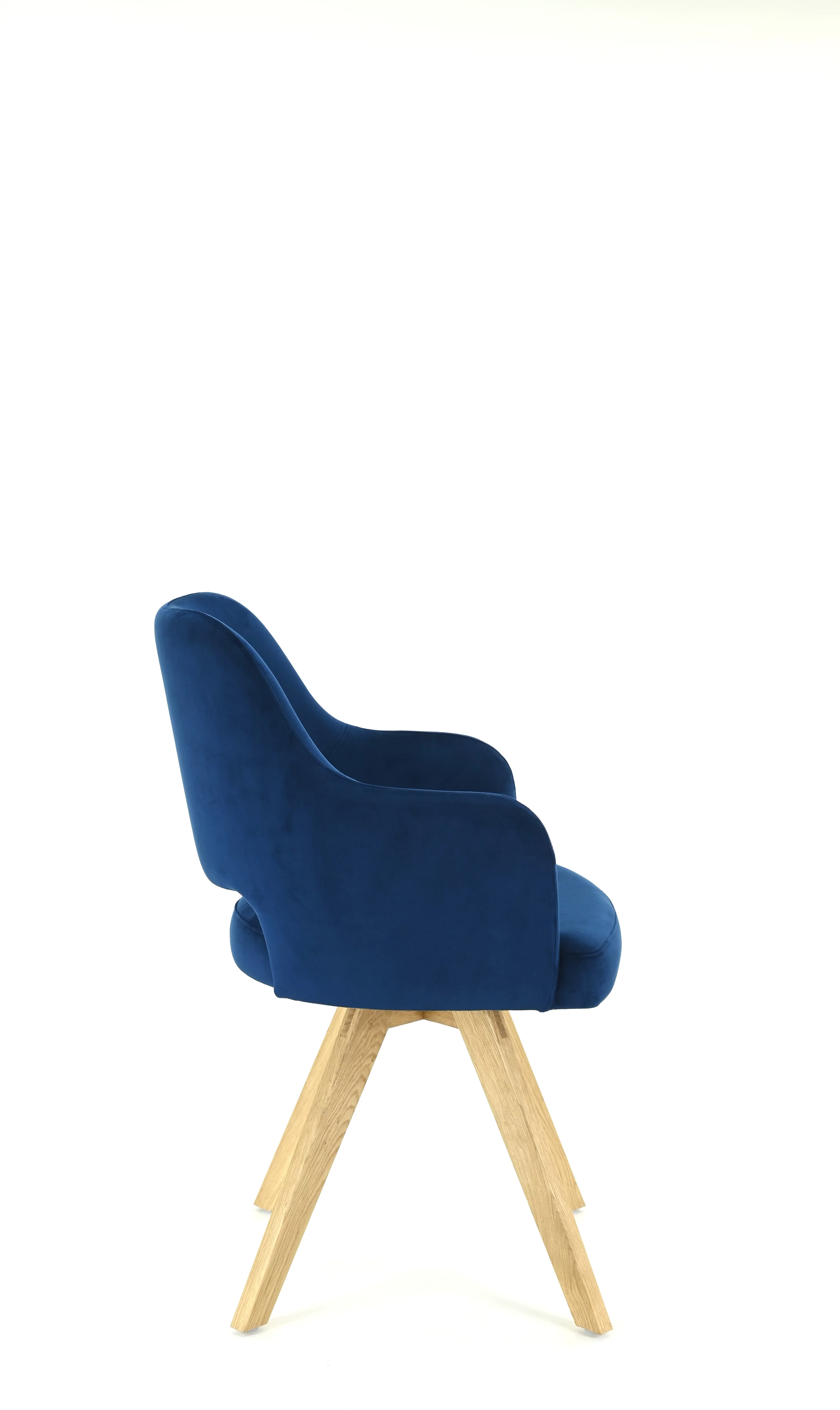 Niebieskie wykończenie dodaje krzesłu świeżości i charakteru, wprowadzając do wnętrza odrobinę energii i unikatowego stylu. Harmonijne linie i lekkość formy sprawiają, że model B-2325 świetnie komponuje się z aranżacjami nowoczesnymi, skandynawskimi czy eklektycznymi. To mebel, który przyciąga wzrok, pozostając jednocześnie praktyczny i wygodny.