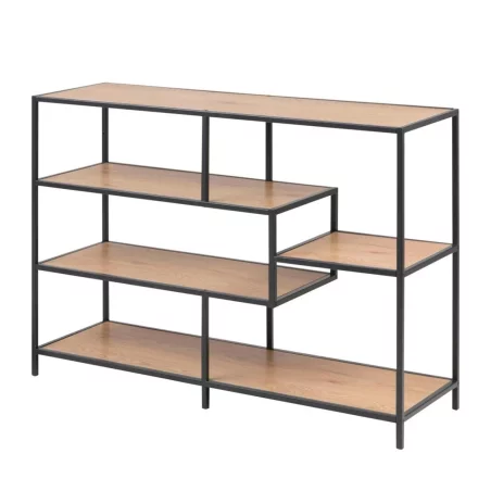 Regał ZAKARIA 114x78 drewniany/czarny – szeroka perspektywa na nowoczesne przechowywanie