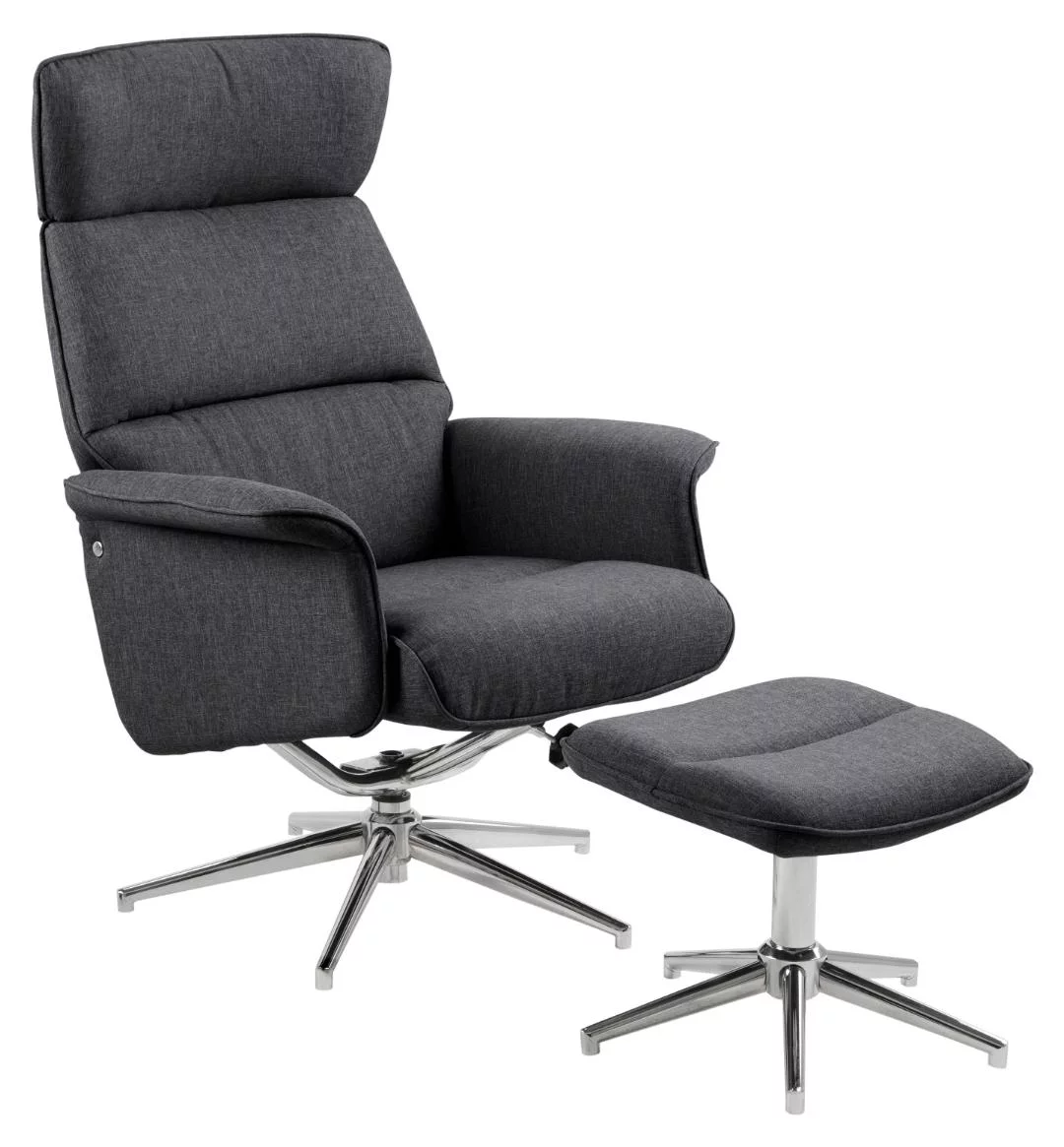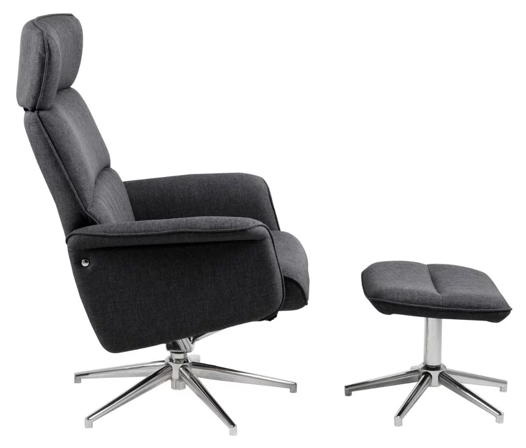 Fotel tapicerowany z podnóżkiem BOCCA ciemnoszary – definicja domowego komfortu