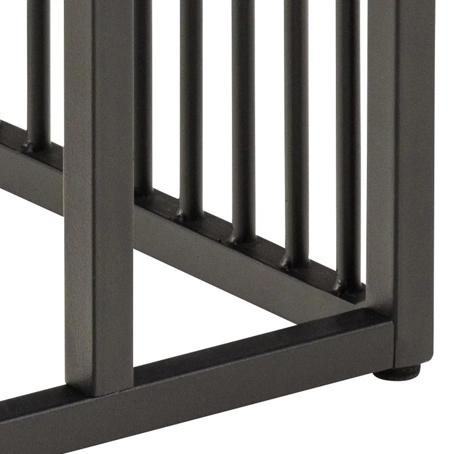 Model RAYO charakteryzuje się prostą, geometryczną konstrukcją, która zapewnia stabilność przy zachowaniu wizualnej subtelności. Blat o wymiarach 43x35 cm oferuje wystarczającą przestrzeń na odstawienie filiżanki kawy, odłożenie książki czy ustawienie nastrojowej lampy. Wykonanie z metalu malowanego proszkowo gwarantuje wysoką odporność na zarysowania oraz trwałość koloru na lata. Smukłe linie stelaża sprawiają, że stolik nie przytłacza nawet bardzo małych pomieszczeń, a jego nowoczesna, surowa estetyka dodaje wnętrzu charakteru i wyrazistości.