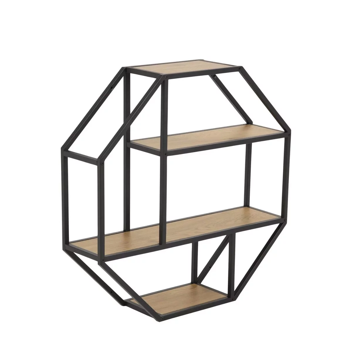 Półka ścienna ZAKARIA 77x77 czarna/drewniana – geometryczna harmonia na Twojej ścianie