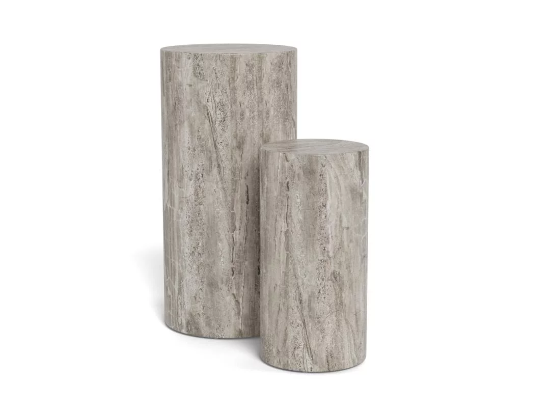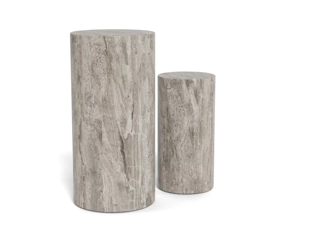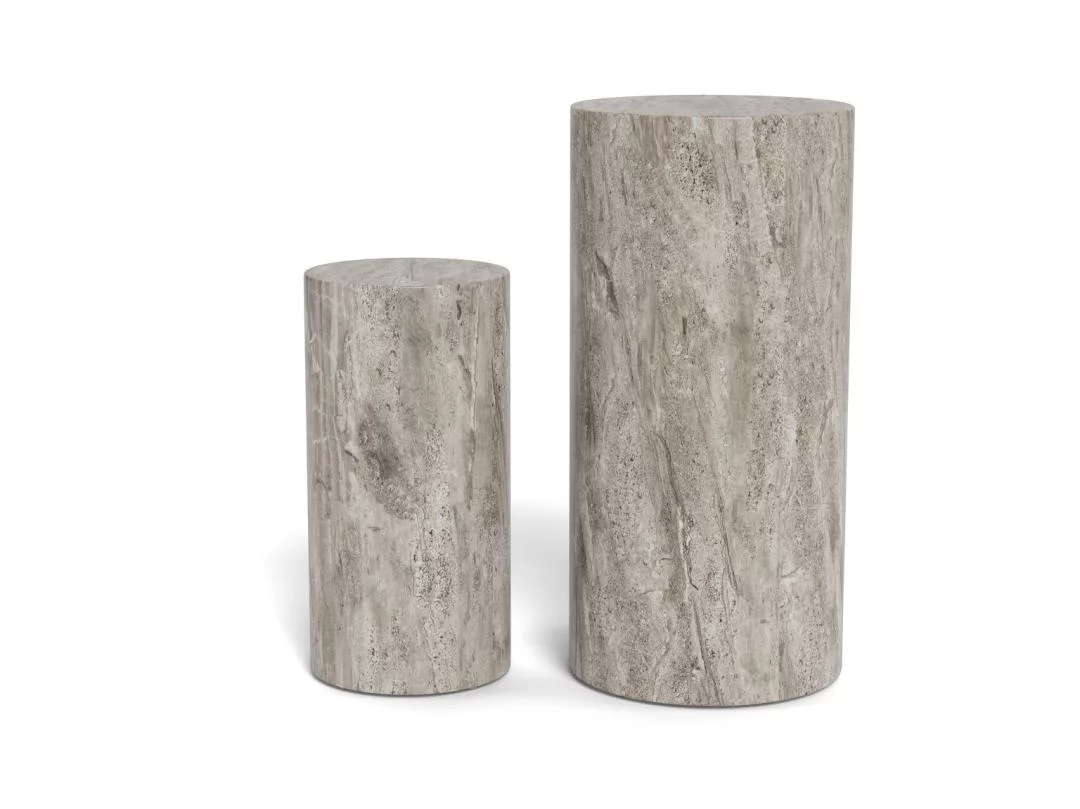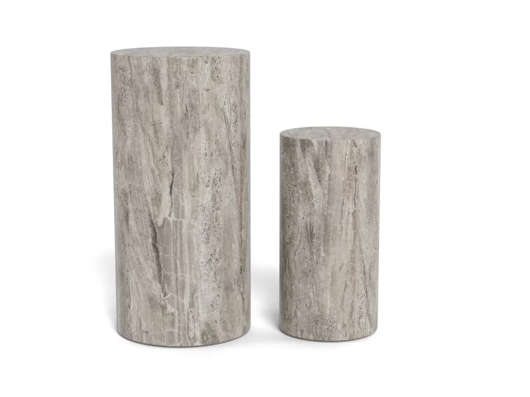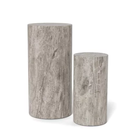Podwójny piedestał z serii ZENIT to zestaw dwóch postumentów o średnicy 34 cm, które stanowią luksusowy fundament dla Twoich ulubionych dekoracji. Wykończenie w szarym marmurze nadaje im posągowej elegancji i surowego, a jednocześnie wyrafinowanego charakteru. Dzięki różnym wysokościom elementów, zestaw tworzy dynamiczną, kaskadową kompozycję, która idealnie odnajduje się w przestronnych salonach, holach czy nowoczesnych galeriach domowych.