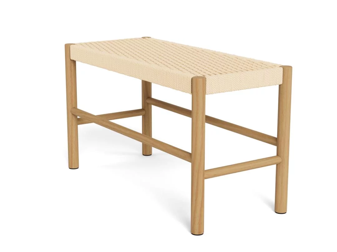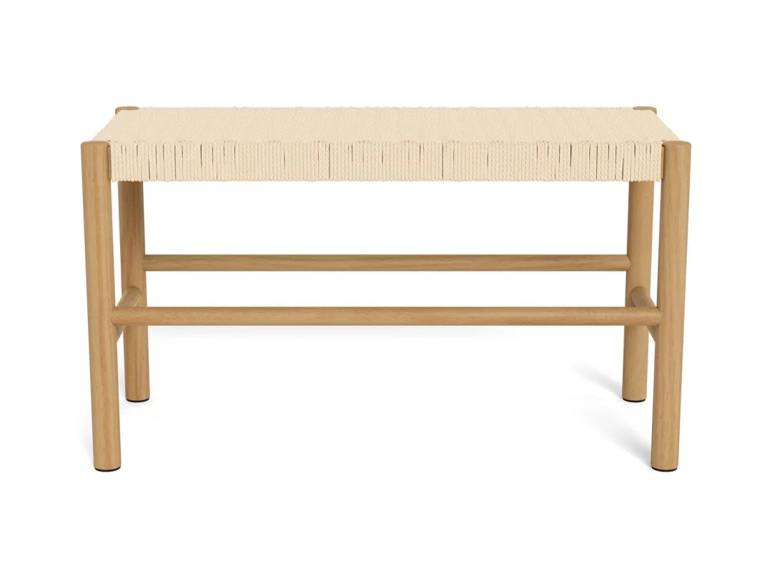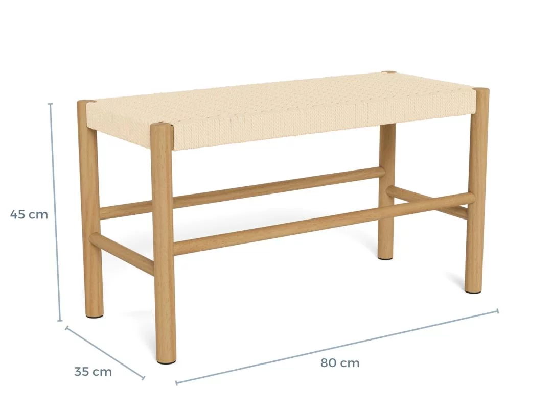 Model SUEZ wyróżnia się przemyślanym designem, w którym surowość drewna spotyka się z miękkością plecionego siedziska. Ażurowa struktura beżowej plecionki nie tylko nadaje meblowi wizualnej przejrzystości, ale również zapewnia komfort użytkowania. Drewniana rama gwarantuje stabilność i trwałość, a staranne wykończenie krawędzi podkreśla wysoką jakość wykonania. Dzięki szerokości 80 cm, ławka jest niezwykle ustawna i nie dominuje w pomieszczeniu, stanowiąc jednocześnie wyrazisty akcent dekoracyjny, który ociepla przestrzeń i dodaje jej przytulnego, ekologicznego charakteru.