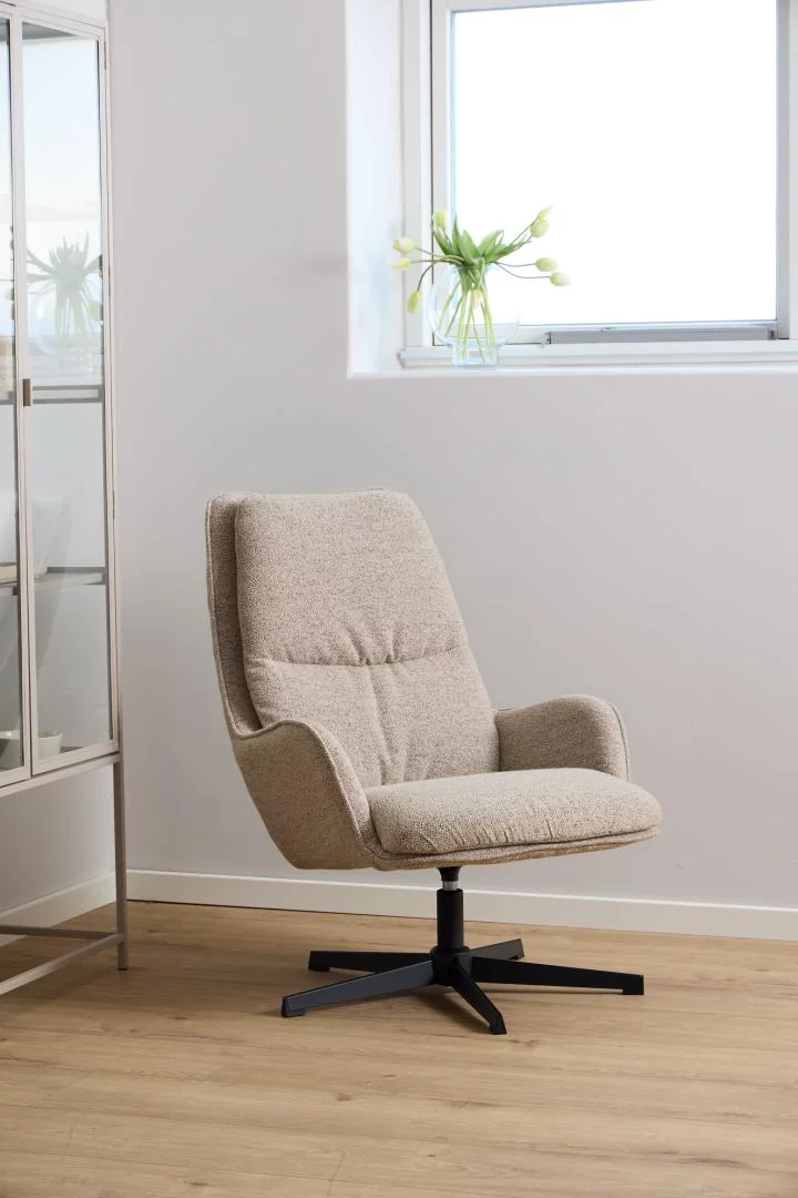 Fotel tapicerowany ARENO beżowy – rzeźbiarska forma i kojący beż