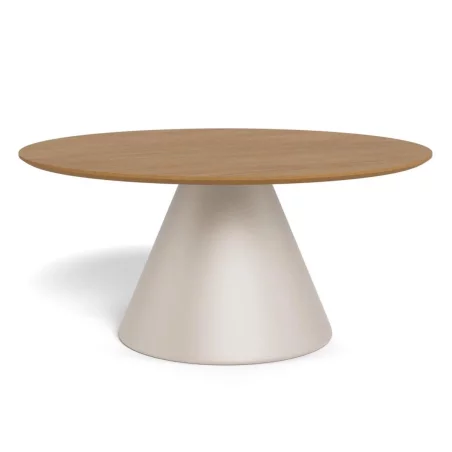 Stolik kawowy okrągły RENO fi 85 okleina dębowa/beżowy