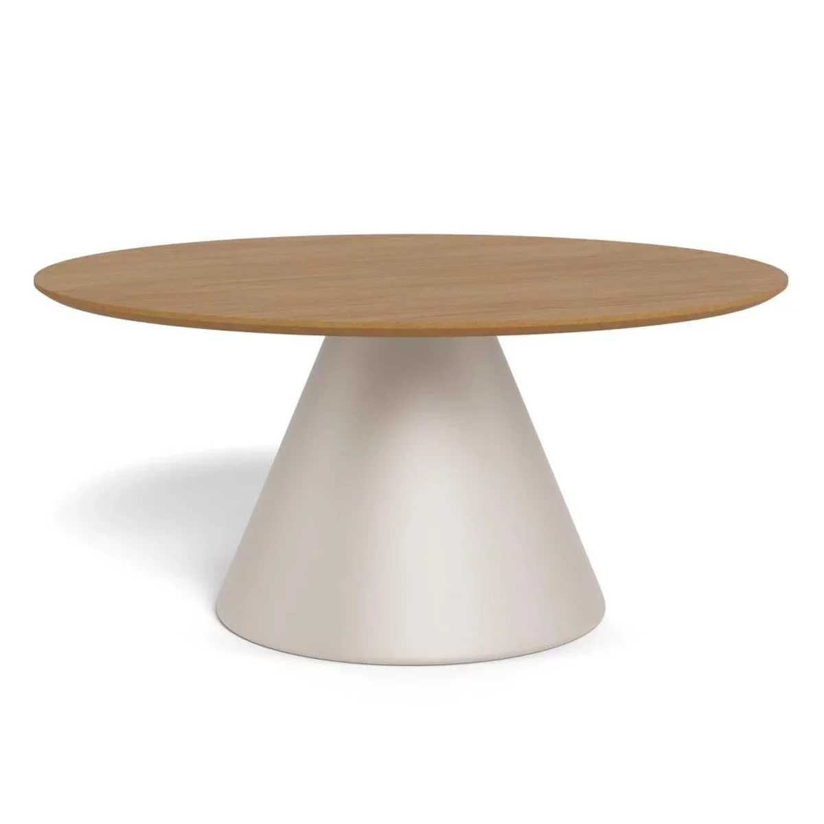 Stolik kawowy RENO o średnicy 85 cm to większy brat popularnego modelu pomocniczego, zaprojektowany jako główny element strefy wypoczynkowej. Harmonijne połączenie blatu w okleinie dębowej z beżową podstawą tworzy kojącą, naturalną paletę barw, która idealnie odnajduje się w estetyce japandi, minimalistycznej oraz nowoczesnej klasyce. Duża, okrągła powierzchnia blatu nie tylko przyciąga wzrok, ale również optycznie łagodzi ostre linie mebli tapicerowanych, wprowadzając do salonu ład i balans.