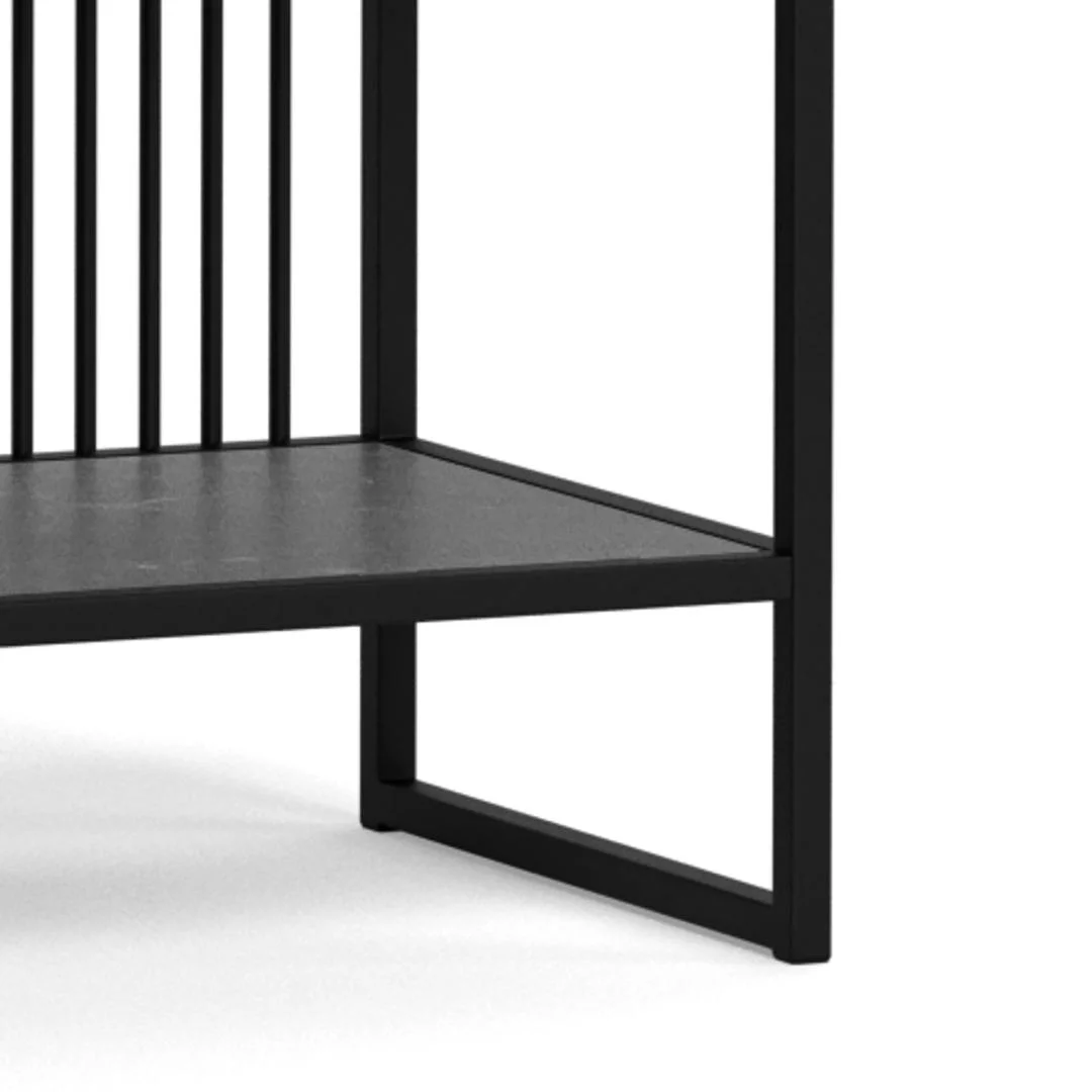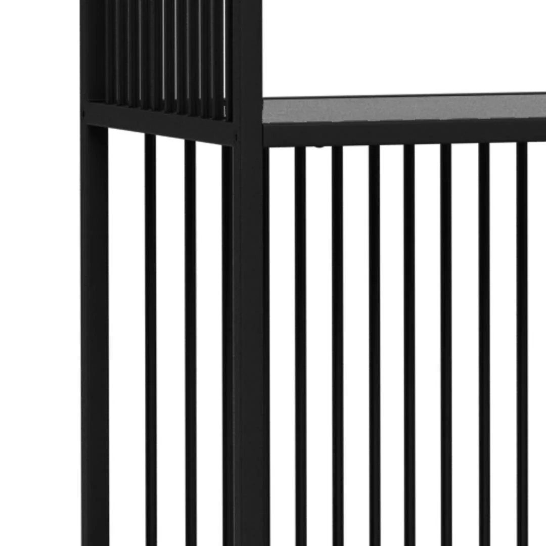 Model RAYO charakteryzuje się otwartą, ażurową konstrukcją, która mimo czarnej kolorystyki nie przytłacza wnętrza. Szerokość 120 cm zapewnia dużą powierzchnię przechowywania, a optymalna głębokość 35 cm pozwala na ustawienie go nawet w węższych korytarzach czy niewielkich salonach bez ograniczania swobody ruchu. Metalowy stelaż gwarantuje stabilność i wysoką odporność na obciążenia, co pozwala na bezpieczne eksponowanie cięższych albumów, donic z kwiatami czy kolekcji winyli. Prosta, geometryczna linia regału sprawia, że jest on niezwykle uniwersalny – odnajdzie się zarówno w surowym biurze, jak i w przytulnym, nowoczesnym pokoju dziennym.